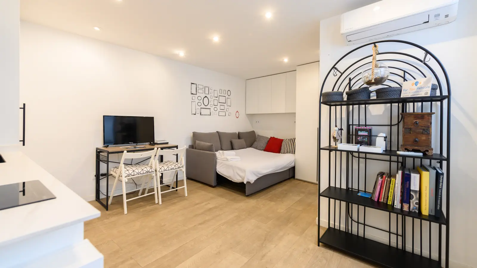 This comfortable studio in Universidad, Madrid, is perfect for individuals seeking a well-equipped living space. The studio comes furnished and includes a washing machine in a shared setup, a dishwasher, and air-conditioning units installed for personalized climate control. Wi-Fi is included, making it convenient for tenants seeking connectivity. All landlords on Spotahome undergo thorough verification to ensure a safe renting experience.