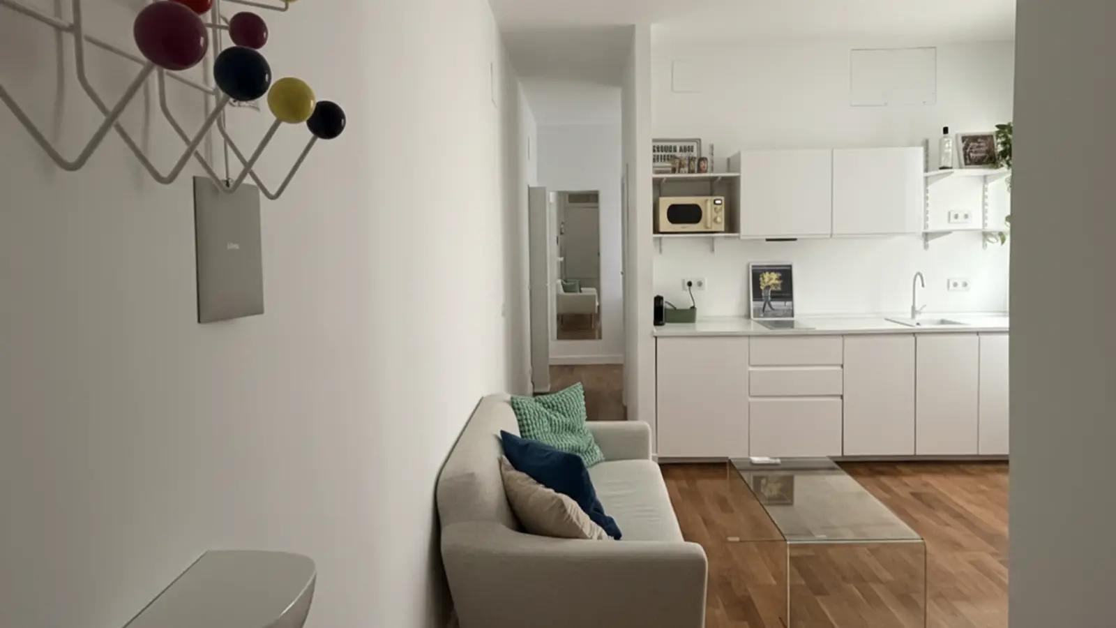 This fully furnished studio in Embajadores, Madrid, offers a cozy yet functional living space. It boasts individual air conditioning units, a common washing machine, and a dishwasher for added convenience. Bills for water, electricity, gas, and Wi-Fi are fully included in the rent.