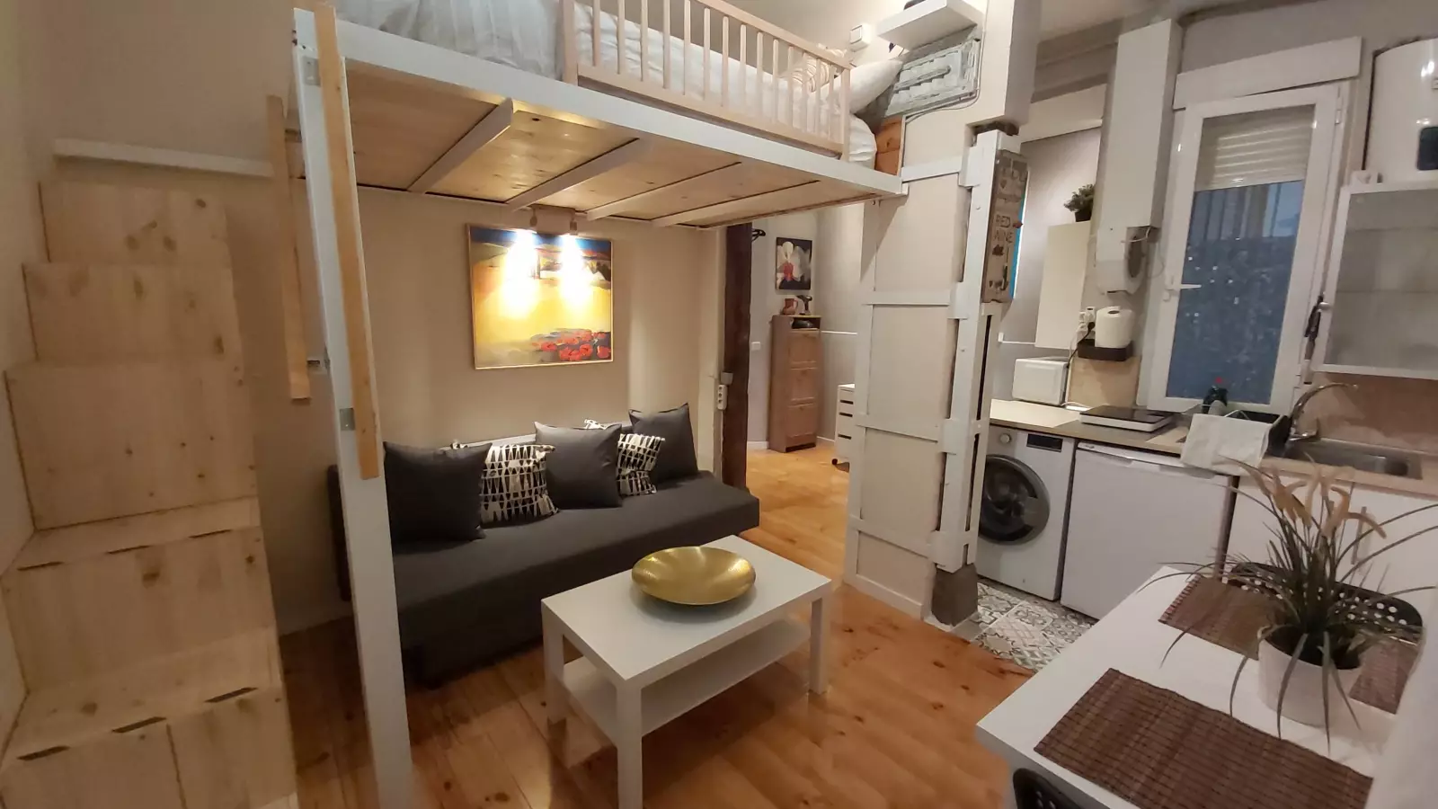 Located on Calle San Andres, this stylish 30m2 duplex studio apartment is available for those who would like to live in the hip Malasaña neighbourhood. This colourful studio boasts a large bedroom and living area which features a comfortable sofa bed, a flat-screen TV and a small walk-in wardrobe. The kitchen is stylish, equipped with modern appliances for convenient cooking. The bathroom is modern and equipped with clean, functional facilities. This area is one of the most popular places in the city for nightlife and 2nd hand stores, comprised of bars, restaurants and cafés that give the district a village-like feel.