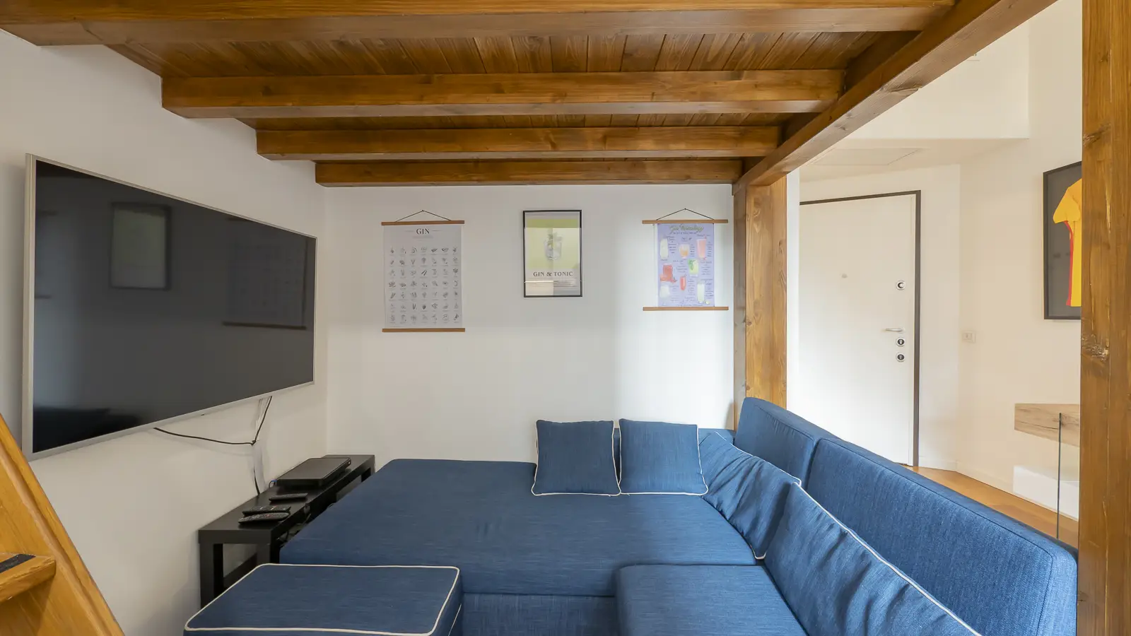 The sleeping area features a comfortable double bed. A cozy retreat where Milan feels like home.
