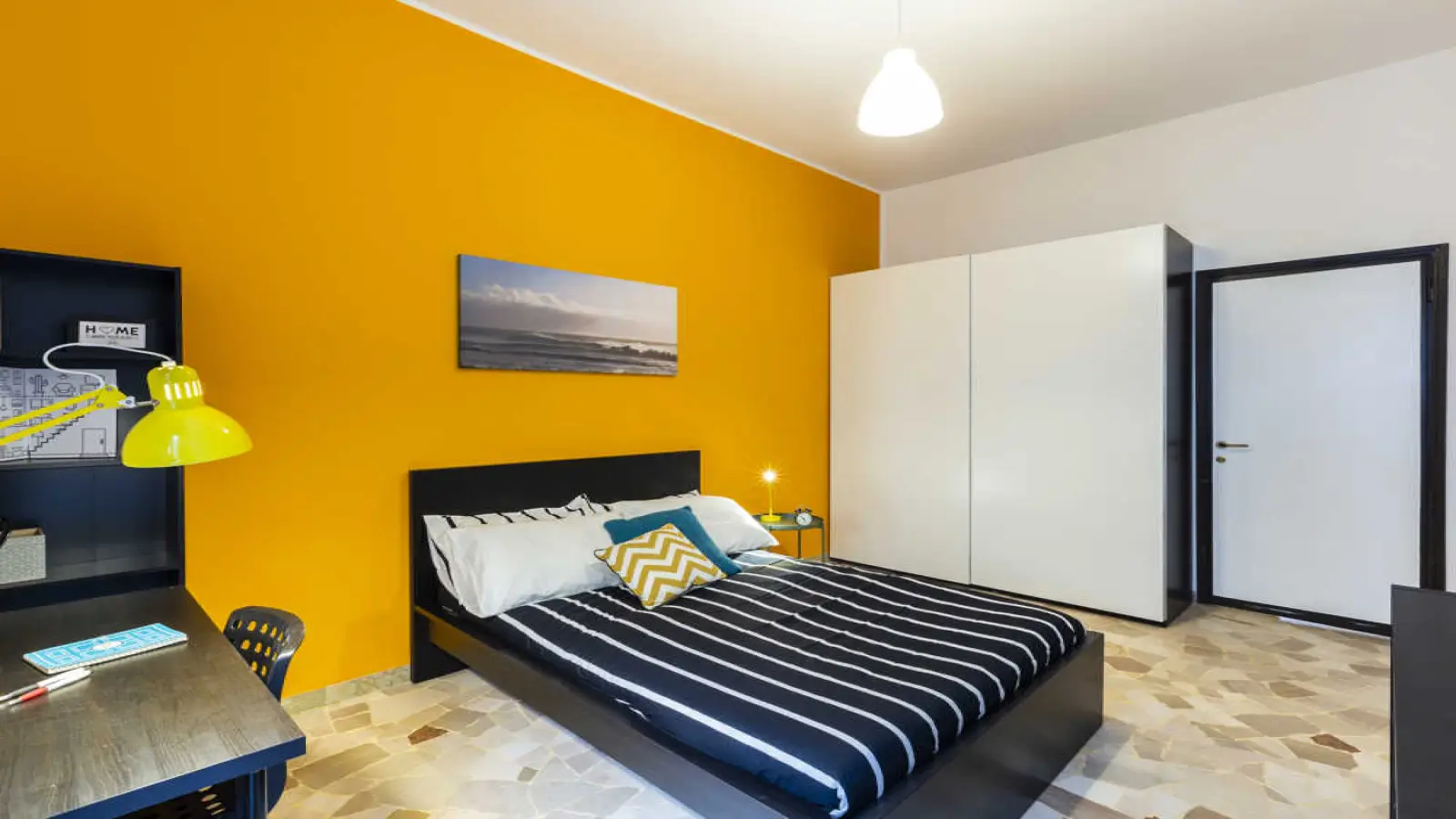 Single room in a shared apartment, composed by 5 bedrooms and 2 bathrooms. Of about 18 sqm with a one and a half bed and a work station. With wifi, dishwasher, washing machine. Energy class: D, IPE 96.62 Kwh/Sqm year.