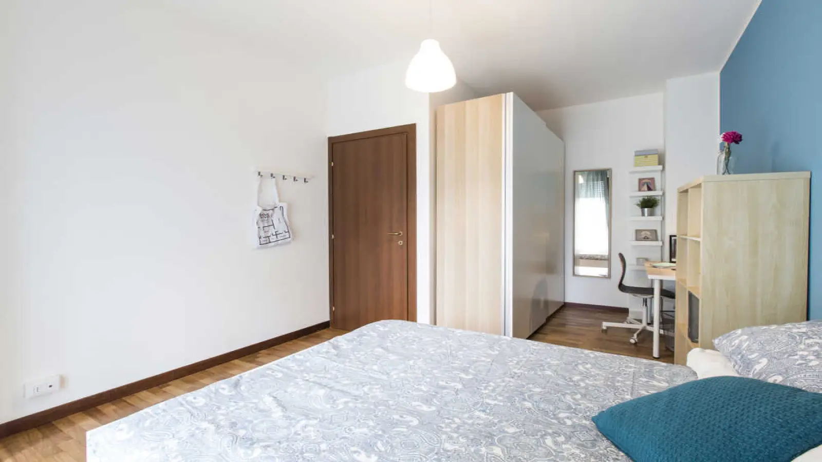 Single room in a shared apartment, composed by 5 bedrooms and 2 bathrooms. Of about 17 sqm with a double bed and a work station. With wifi, concierge services, dishwasher, washing machine. Energy class: F, IPE 162.95 Kwh/Sqm year.