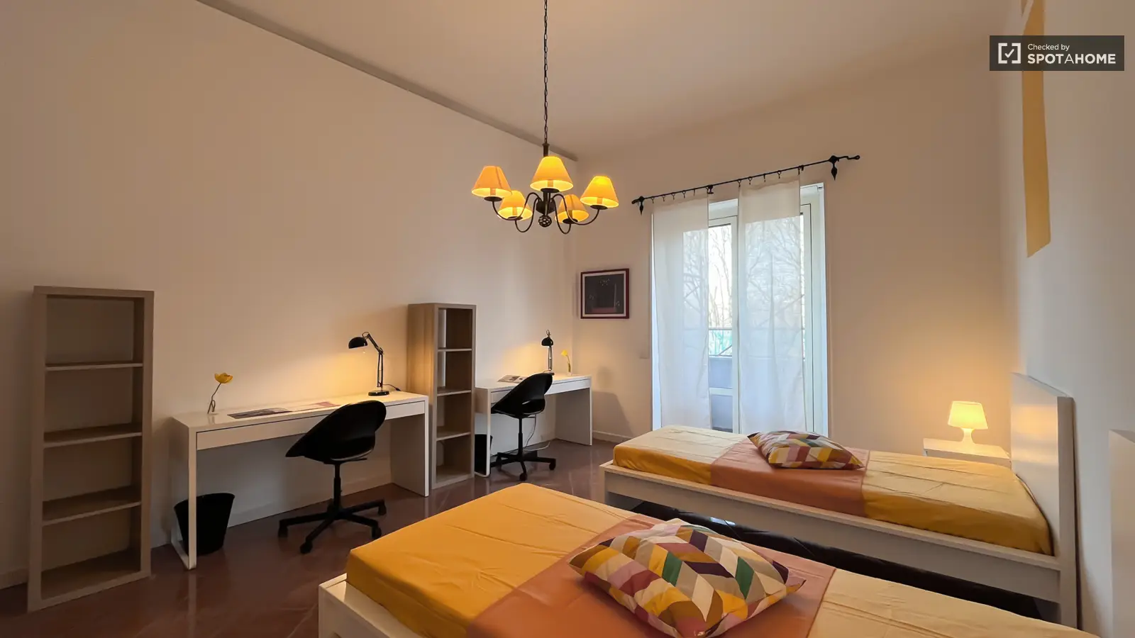 This room in a shared 5-bedroom apartment in Maciachini-Maggiolina, Milan is available for rent to professionals and students. The room is in a beautifully furnished apartment equipped with air conditioning, a kitchen with a dishwasher and oven, central heating, and a private washing machine. Spotahome has personally checked this listing for reliable quality assurance. Bills are managed under specific terms and agreements.