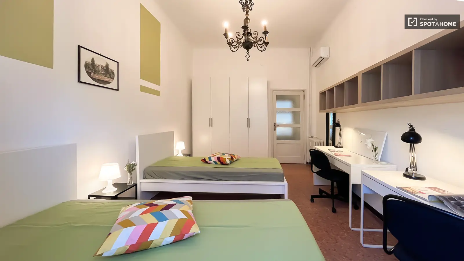 This room in a shared 5-bedroom apartment in Maciachini-Maggiolina, Milan is available for rent to professionals and students. The room is in a beautifully furnished apartment equipped with air conditioning, a kitchen with a dishwasher and oven, central heating, and a private washing machine. Spotahome has personally checked this listing for reliable quality assurance. Bills are managed under specific terms and agreements.