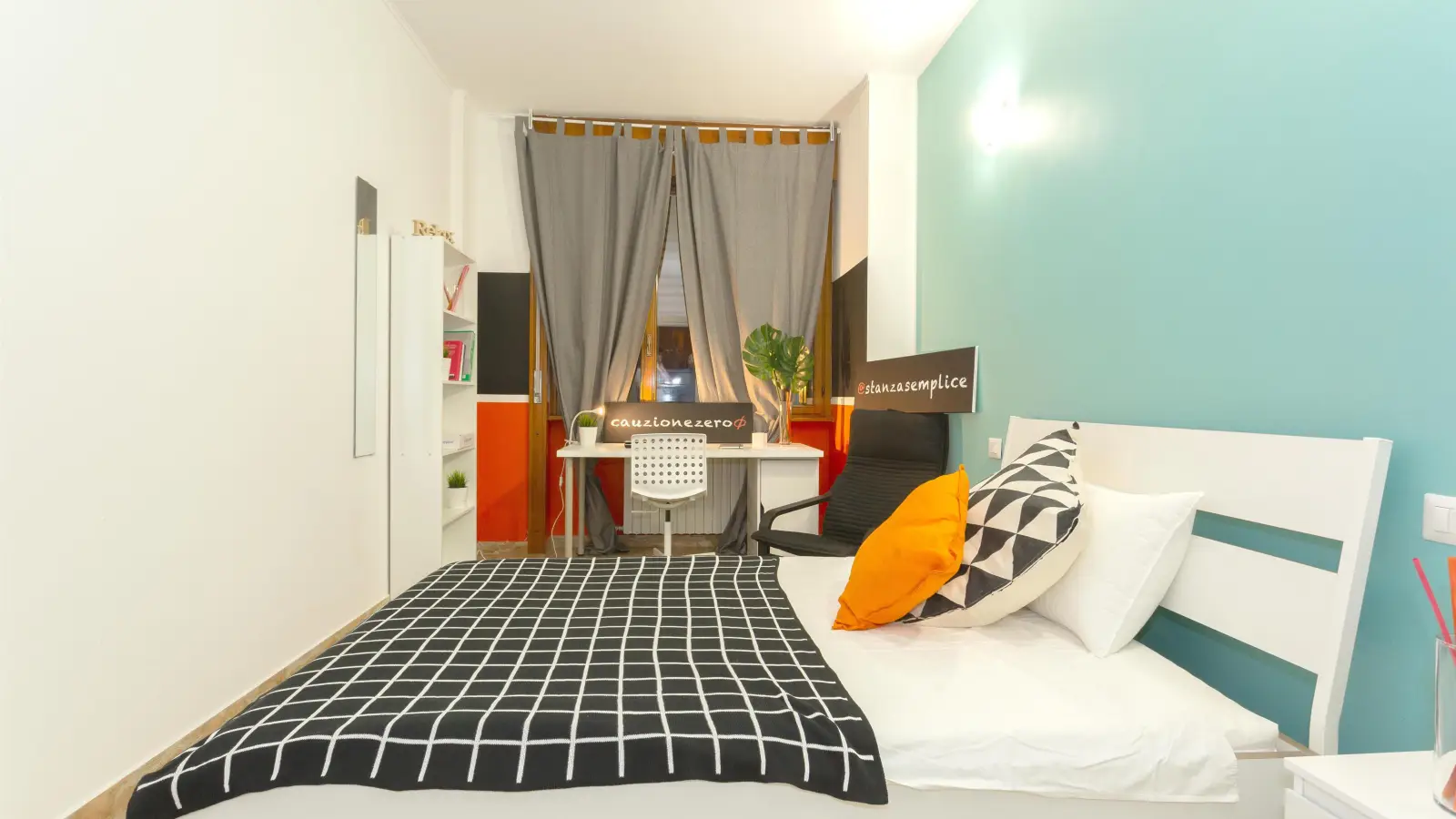 Zona Loreto, posizione strategica e ambita, si affitta una bellissima suite Stanza Semplice ristrutturata appositamente per offrire comfort e comodità ai nostri studenti. La stanza è dotata di letto piazza e mezza, armadio 3 ante, scrivania con portaoggetti, comodino, tendaggi, specchio, scarpiera, libreria. I colori delle pareti favoriscono il buon umore e aiutano nello studio.