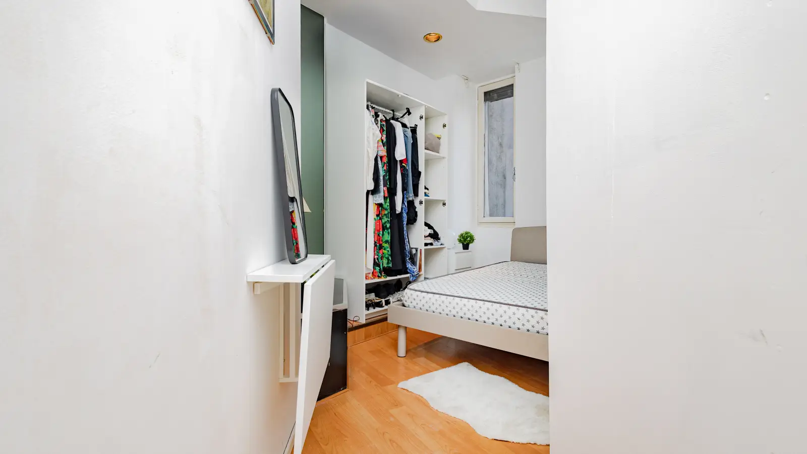 Discover this charming room for rent in a shared 5-bedroom apartment located in Guastalla, Milan. The apartment is furnished and equipped with essential features such as an elevator and a well-stocked kitchen, making daily living comfortable.