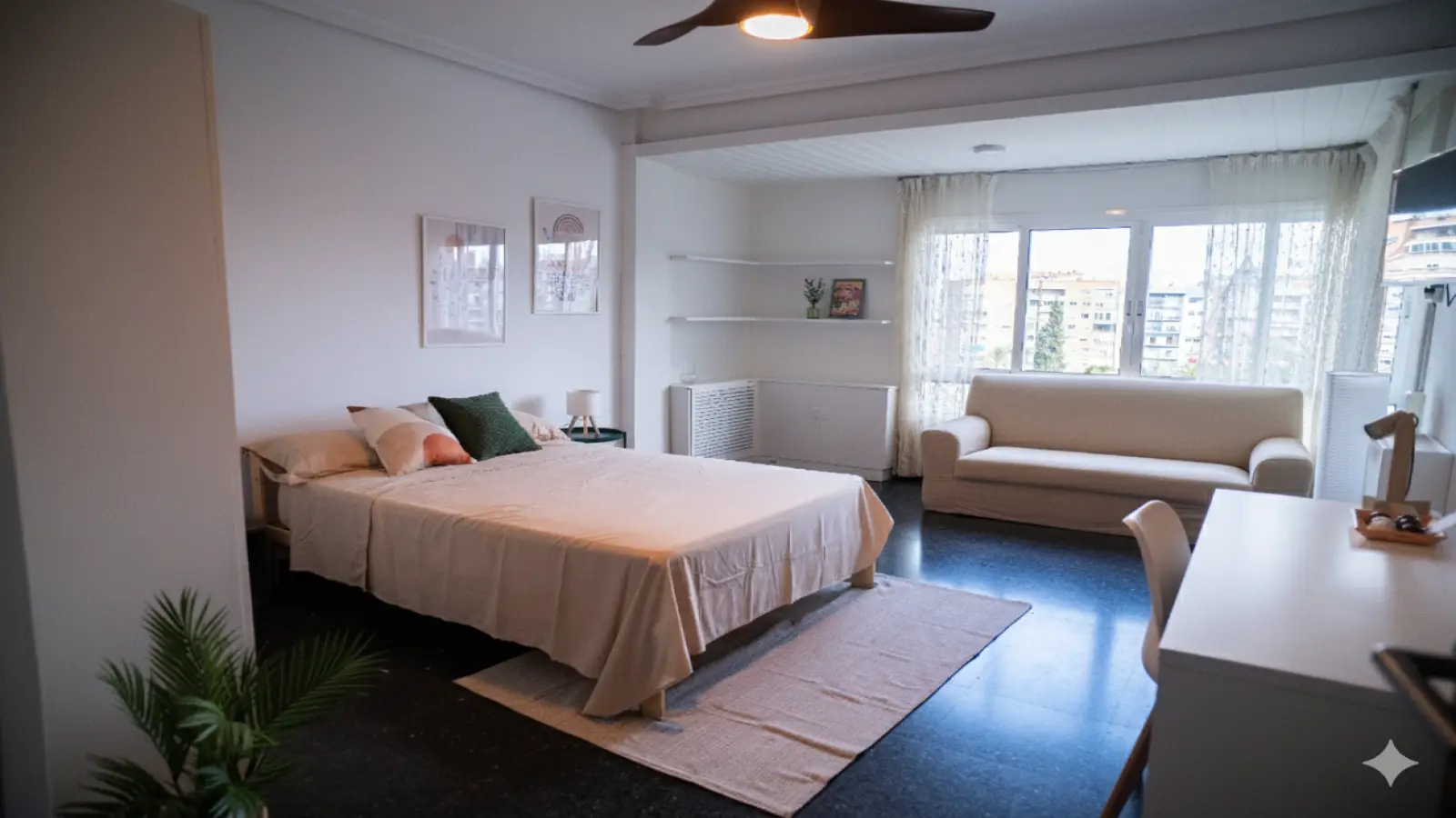 Explore this room in a shared 6-bedroom apartment, located in the heart of Murcia. The apartment is fully furnished and includes an equipped kitchen, a washing machine (common area use), and an oven. Modern amenities such as central heating ensure comfort, and the building features an elevator for convenience. All major utility bills (electricity, water, and WiFi) are included in the rental.