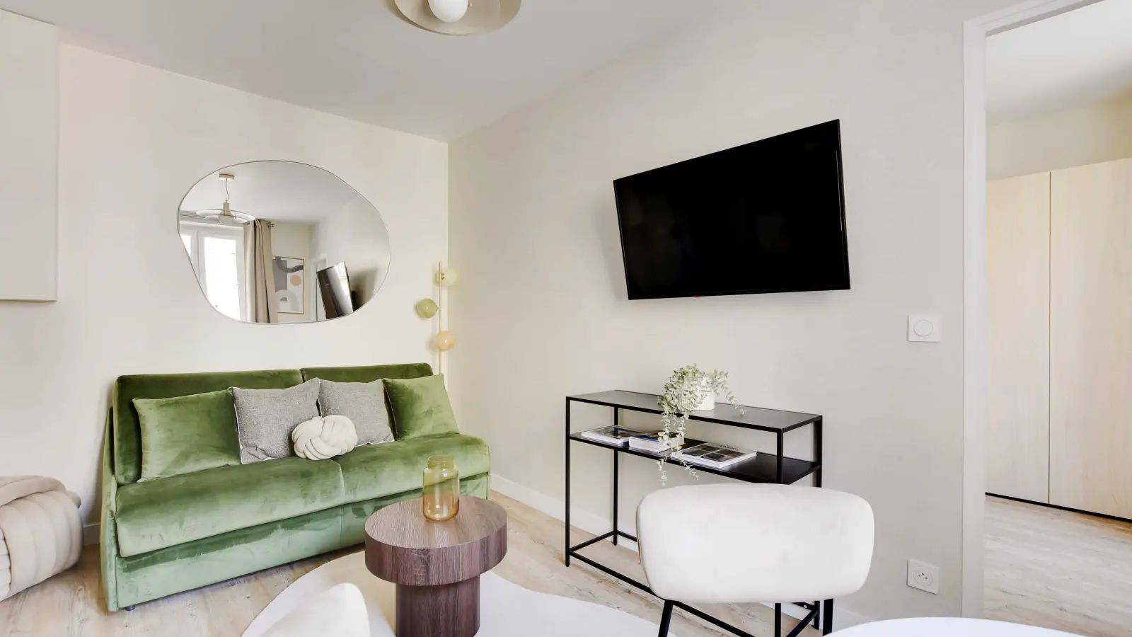 This furnished 1-bedroom apartment in Louis Bertrand is perfect for individuals desiring tasteful living in Paris. The apartment includes an equipped kitchen with a dishwasher, a central heated water system, and common access to a washing machine. Additionally, bills covering water, electricity, gas, and WiFi are included, ensuring convenience for tenants.