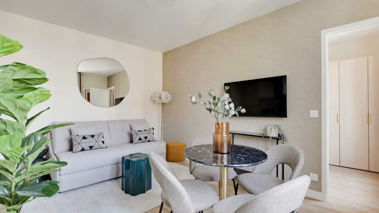 Cleaning fee between 100 € and 250 € , depending on the surface of the studio/ apartment. You pay it only once for all your stay.