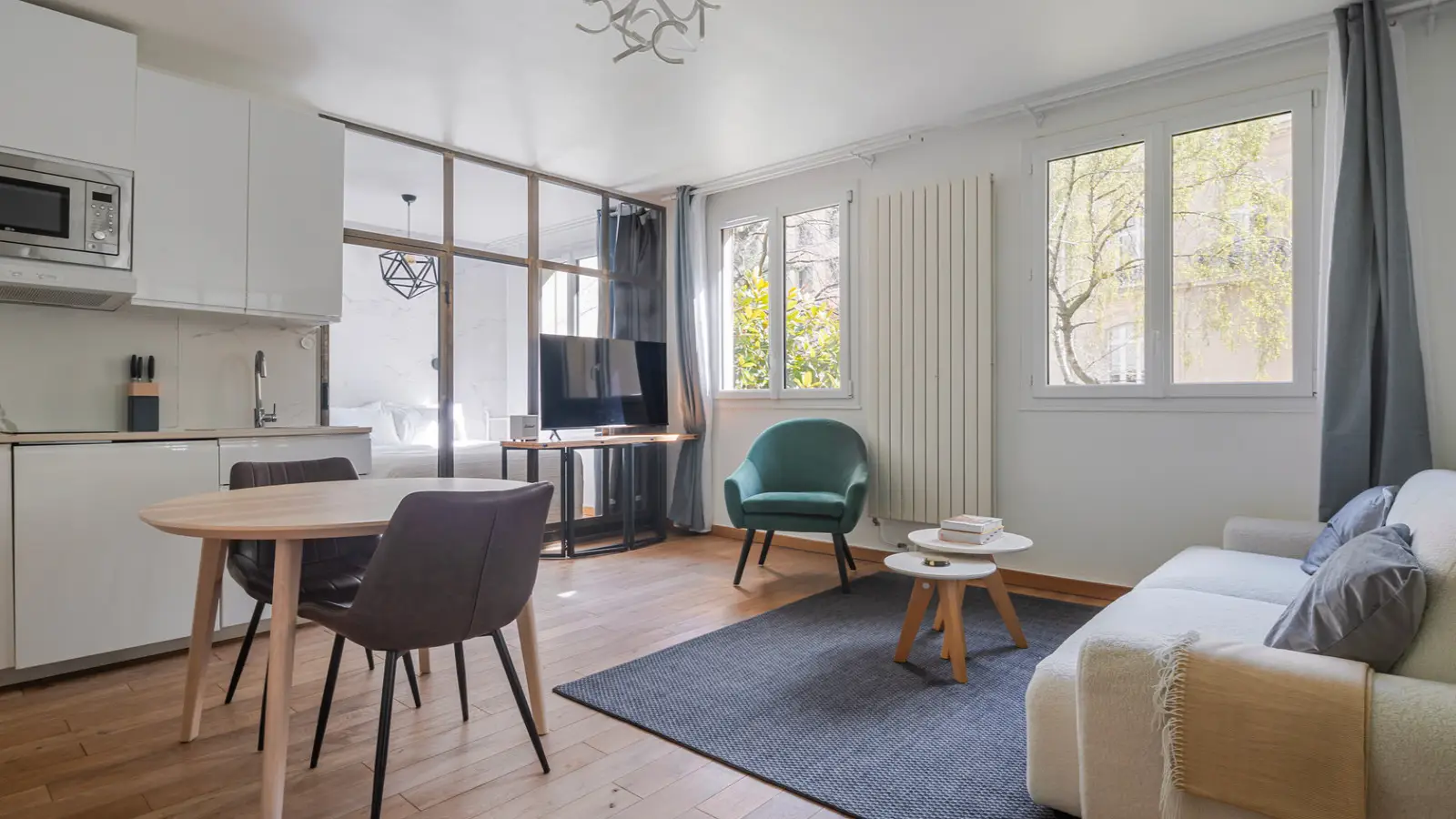 Welcome to this charming 1-bedroom apartment located in the exclusive Triangle d'Or area of Paris. This property comes fully furnished, with all bills included (electricity, water, gas, and WiFi) for your convenience. Features include central heating, an equipped kitchen, a private washing machine, and a television. The residence is accessible via an elevator, ensuring comfortable living conditions.