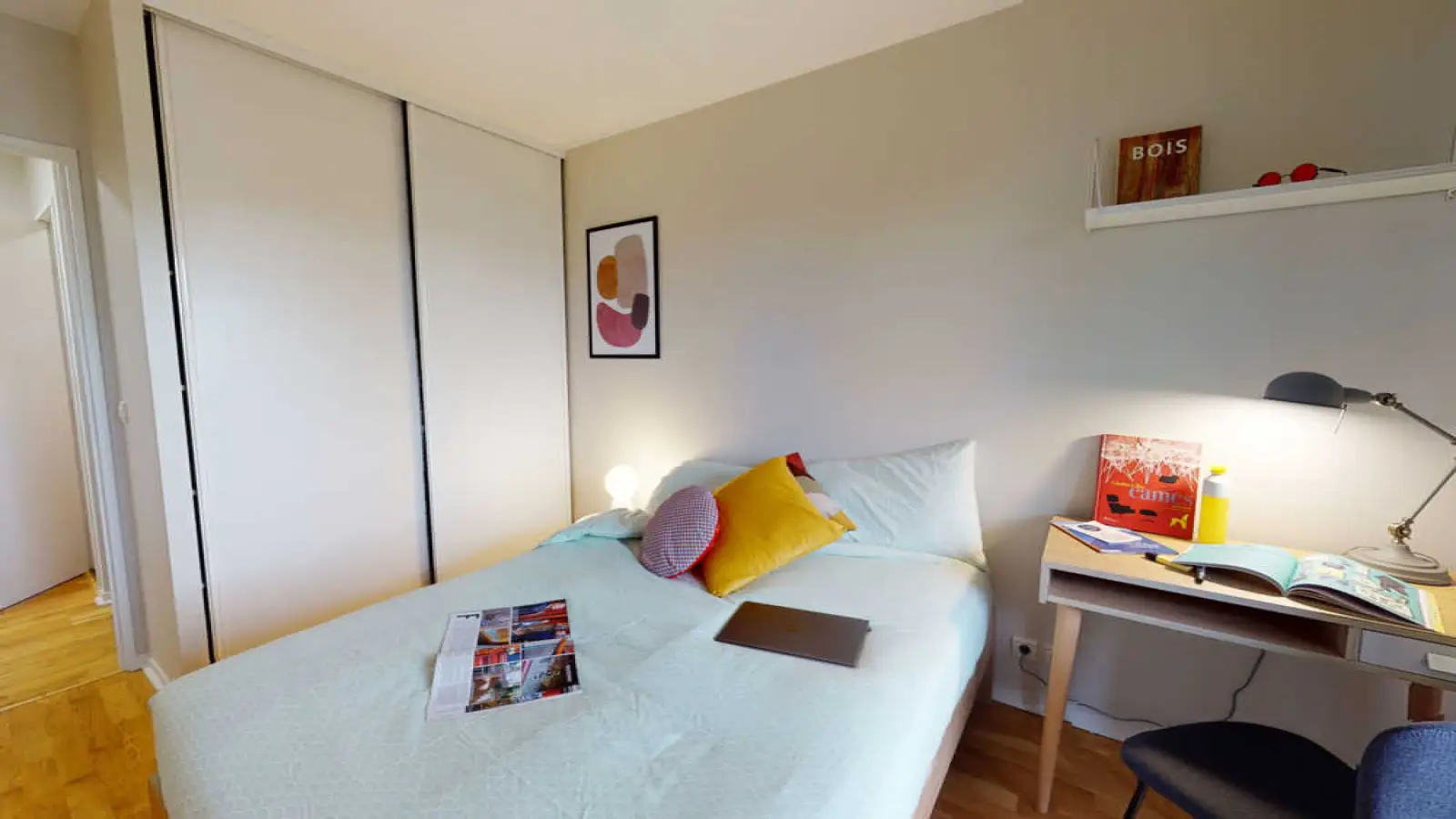This lovely private bedroom in a fully equipped, furnished and all-inclusive flatshare in Issy-les-Moulineaux is a mix of comfort and design. It has got household furnishings, including a bed with pillows and duvet What is missing is your things to feel at home! The room can be locked if you need intimacy. The flatshare can be found in the Issy-le-Moulineaux neighborhood, in the heart of Issy-les-Moulineaux. Plenty of shops, public transports, restaurants are accessible close by. The apartment is on floor 2 with lift. It is entirely equipped and is composed of a large kitchen with refrigerator, microwave, pans, crockery, kitchen ustensils, kettle… The accommodation also contains an ironing board, a washing machine, a clothes rack, an iron. Additionally, you will find cleaning items in the accommodation: bagless hoover, dustpan and brush, broom, mop and bucket… Every Joivy furnished flatshare includes all expenses: housing insurance, water, electricity, unlimited wi-fi, condominium fees, household waste tax.