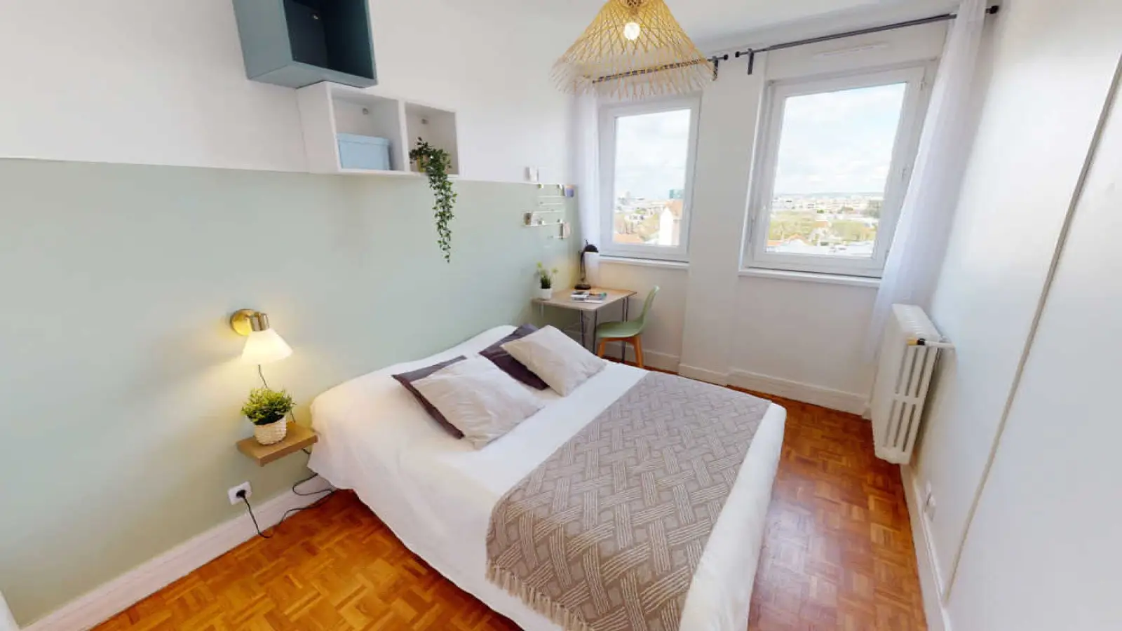 This lovely private bedroom in a fully equipped, furnished and all-inclusive flatshare in Courbevoie is a mix of comfort and design. It has got household furnishings, including a bed with pillows and duvet What is missing is your things to feel at home! The room can be locked if you need intimacy. The flatshare can be found in the Courbevoie neighborhood, in the heart of Courbevoie. Plenty of shops, public transports, restaurants are accessible close by. The apartment is on floor 6 with lift. It is entirely equipped and is composed of a large kitchen with refrigerator, microwave, pans, crockery, kitchen ustensils, kettle… The accommodation also contains an ironing board, a washing machine, a clothes rack, an iron. Additionally, you will find cleaning items in the accommodation: bagless hoover, dustpan and brush, broom, mop and bucket… Every Joivy furnished flatshare includes all expenses: housing insurance, water, electricity, unlimited wi-fi, condominium fees, household waste tax.