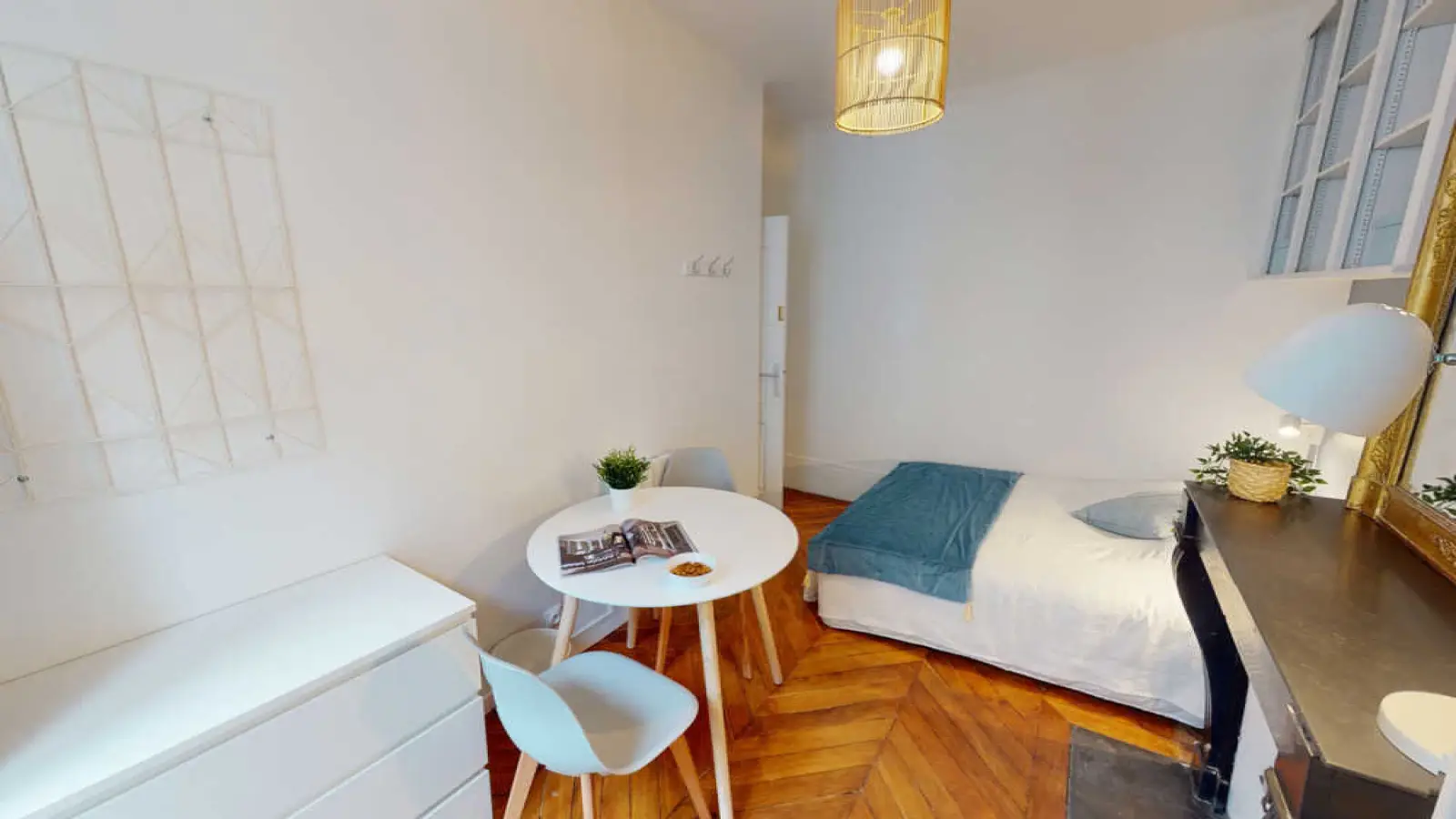 This lovely private bedroom in a fully equipped, furnished and all-inclusive flatshare in Paris is a mix of comfort and design. It has got household furnishings, including a bed with pillows and duvet What is missing is your things to feel at home! The room can be locked if you need intimacy. The flatshare can be found in the Muette neighborhood, in the heart of Paris. Plenty of shops, public transports, restaurants are accessible close by. The apartment is on floor 2 without lift. It is entirely equipped and is composed of a large kitchen with refrigerator, microwave, pans, crockery, kitchen ustensils, kettle… The accommodation also contains an ironing board, a washing machine, a clothes rack, an iron. Additionally, you will find cleaning items in the accommodation: bagless hoover, dustpan and brush, broom, mop and bucket… Every Joivy furnished flatshare includes all expenses: housing insurance, water, electricity, unlimited wi-fi, condominium fees, household waste tax.