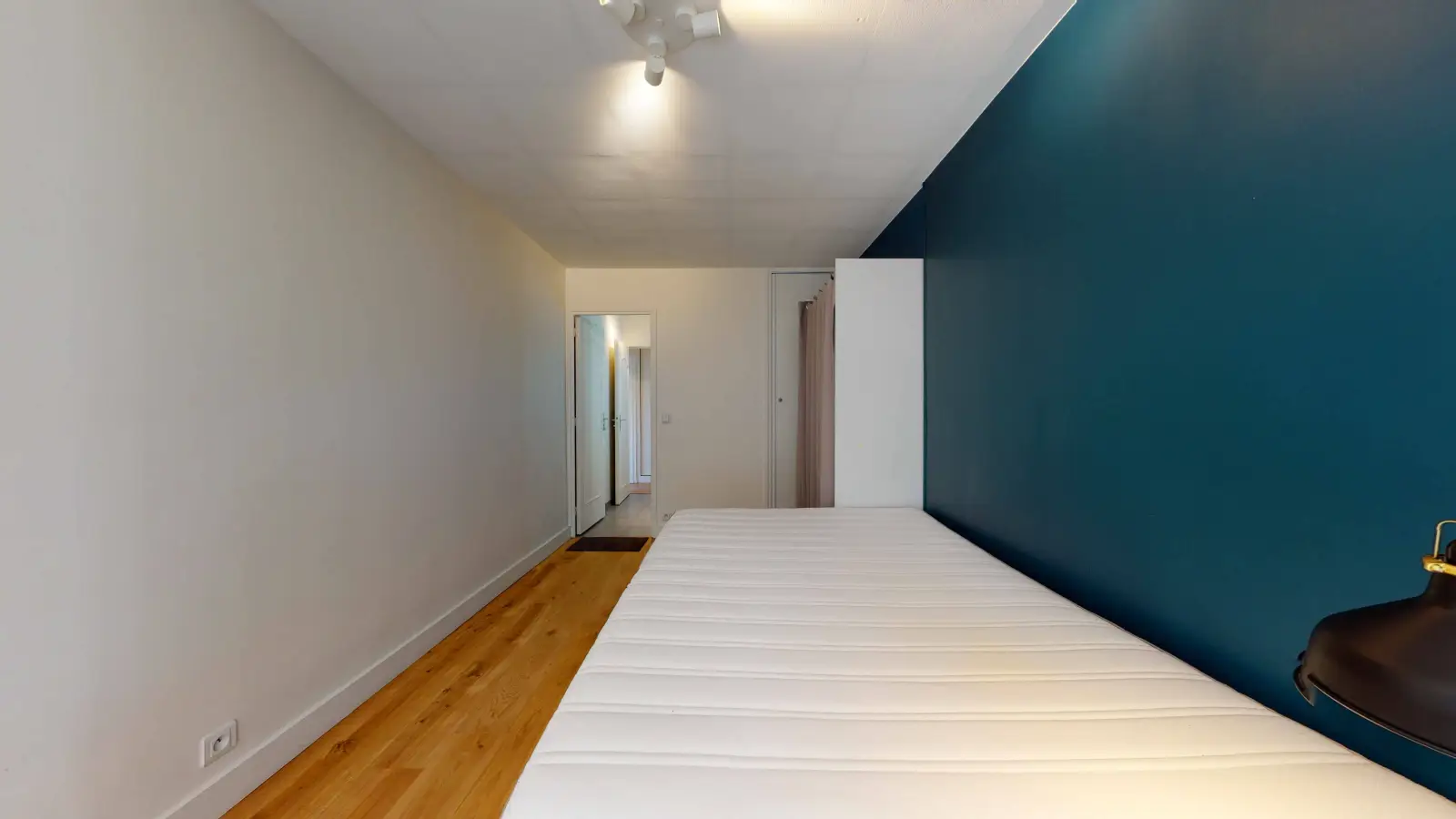 Some essential information about Champs Moussu 12: - Located in Champs-sur-Marne, at 12 allée du Bois Moussu - 88m² apartment fully furnished and equipped - 4 private rooms with shared bathrooms - Common areas: living room, dining room, kitchen - Renovated, furnished, equipped - Utilities included (water, electricity, gas, internet) - Support and maintenance service