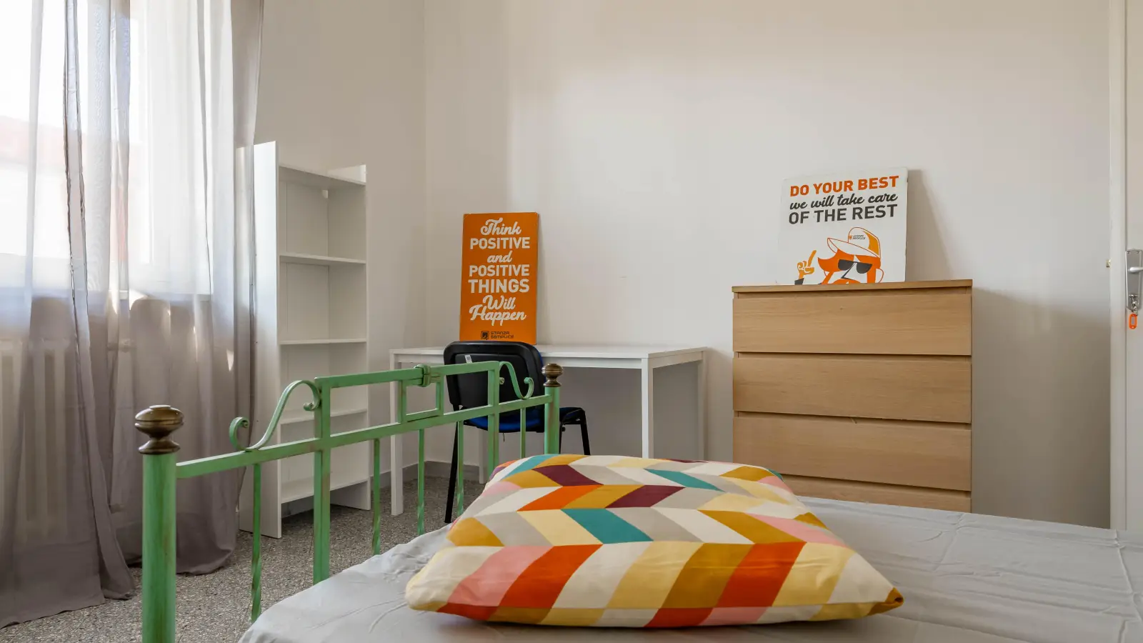 Na área estratégica e muito procurada do Politecnico, um belo quarto individual da Stanza Semplice está disponível para aluguel, recém-renovado e projetado especificamente para oferecer conforto e comodidade aos nossos alunos. O quarto está mobiliado com uma cama de solteiro, um guarda-roupa de três portas, uma escrivaninha com espaço para armazenamento, mesa de cabeceira, cortinas, espelho, sapateira e estante.
