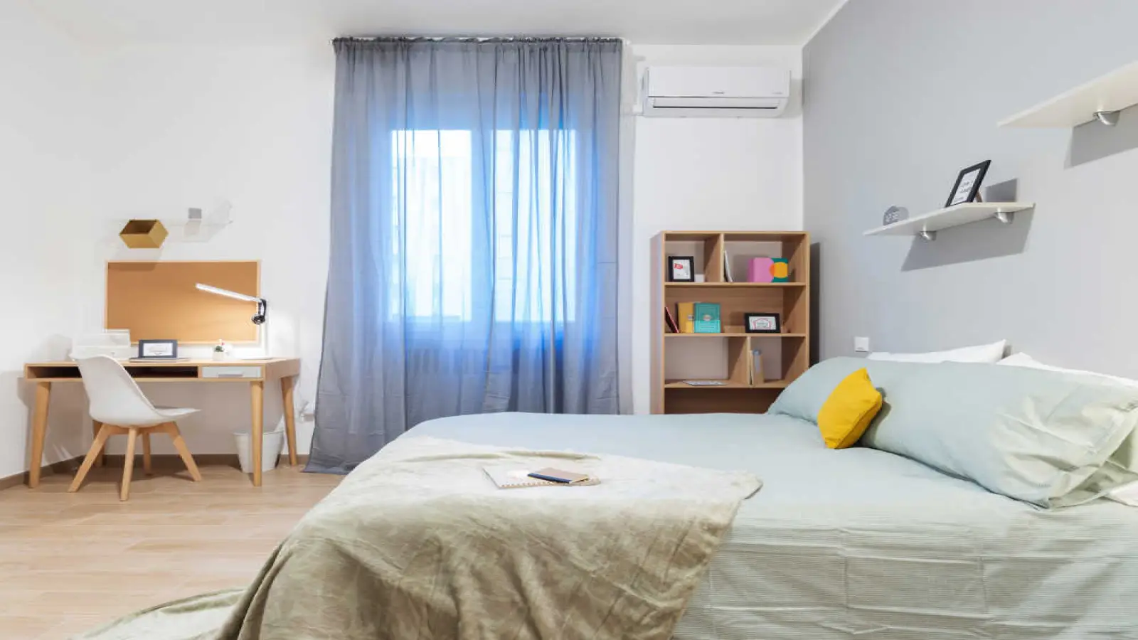 Quarto individual em apartamento compartilhado, composto por 3 quartos e 1 banheiro. Com aproximadamente 21 m², com uma cama e meia e uma estação de trabalho. Com Wi-Fi, lava-louças e máquina de lavar roupa. Classe energética: E, IPE 171,50 kWh/m² ano.