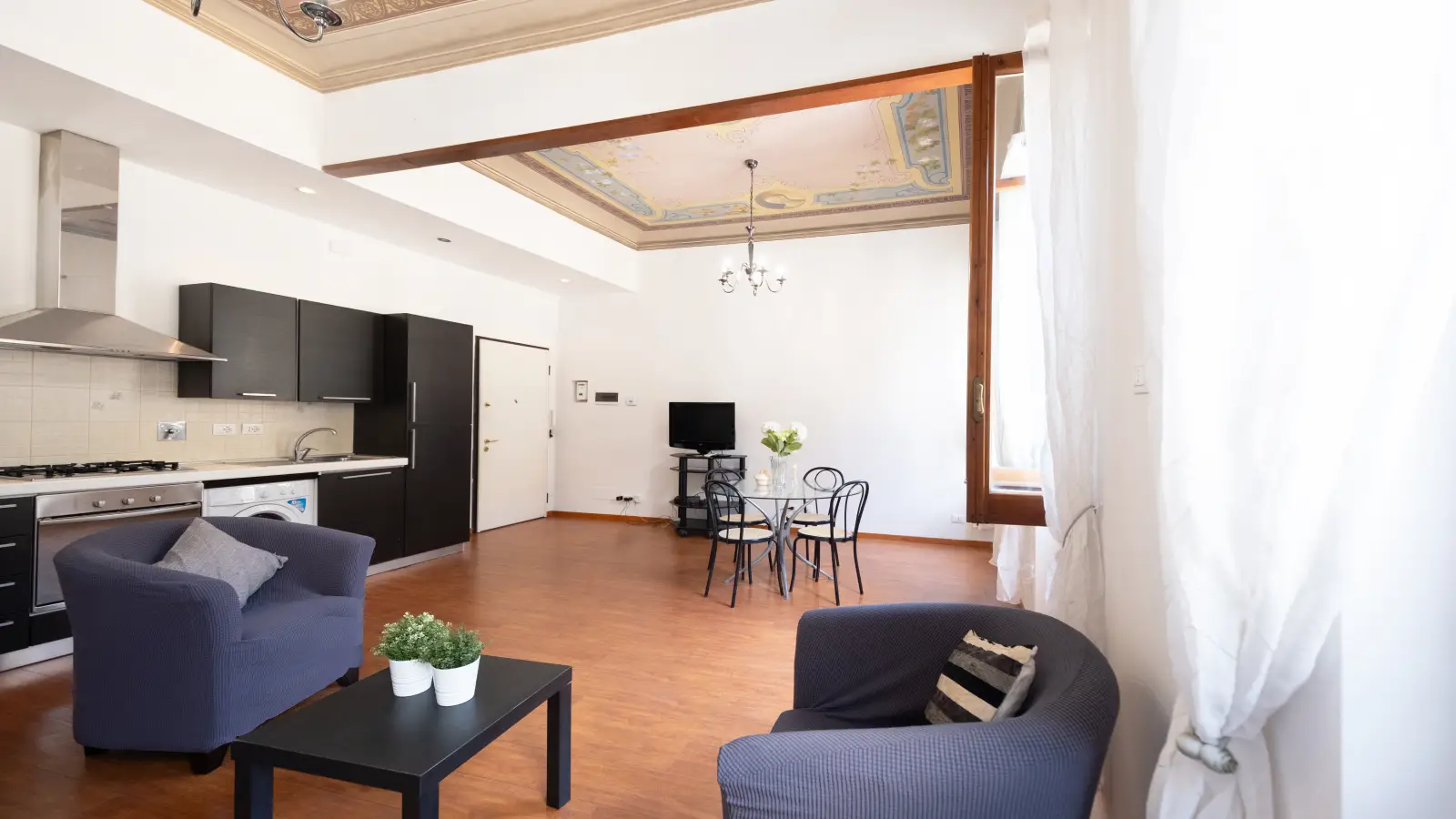 Localizado no charmoso bairro de Duomo-San Giovanni, você estará a poucos passos de diversos pontos turísticos icônicos, como o Tabernacolo dei Battilani, a Chiesa di San Giovannino dei Cavalieri e a Piazza dell'Indipendenza. Mergulhe na vibrante atmosfera cultural e histórica de Florença com este apartamento em localização ideal.