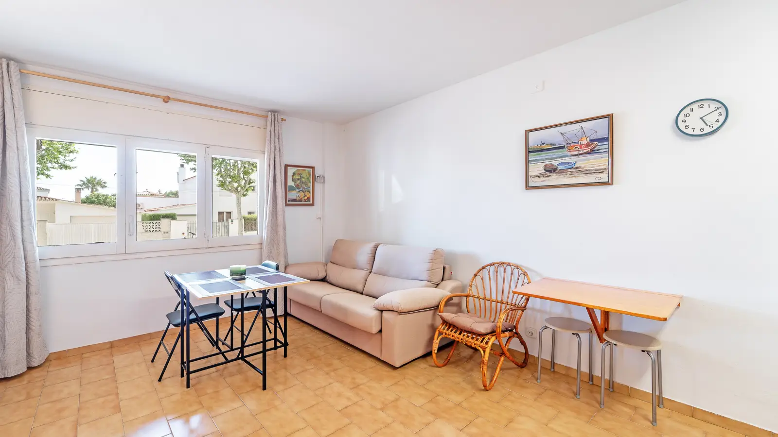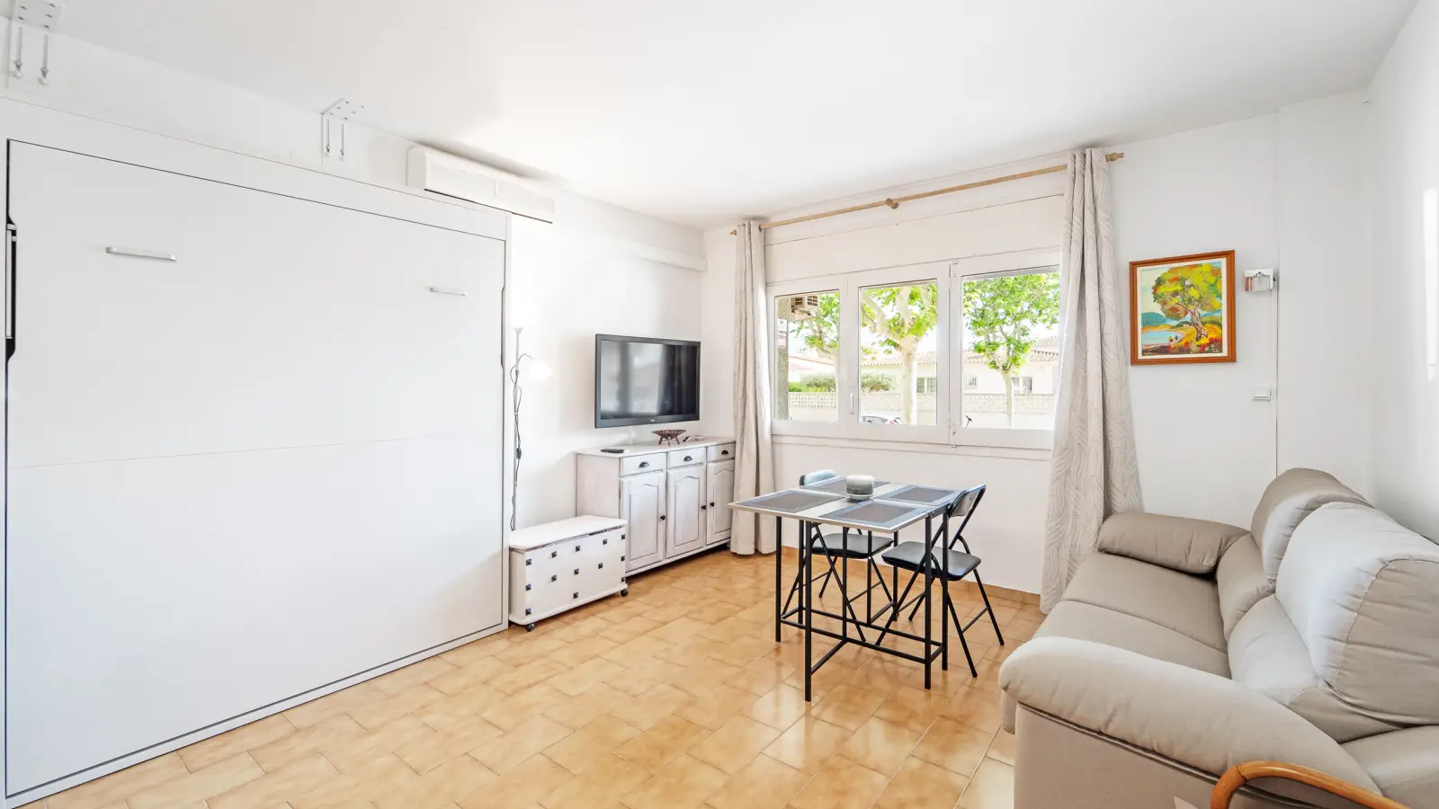 Descubra este charmoso estúdio para alugar em Castelló d'Empúries. O imóvel está totalmente mobiliado, incluindo máquina de lavar roupa privativa e cozinha equipada para sua comodidade. Possui ar-condicionado individual, garantindo conforto durante todo o ano. Todas as despesas — eletricidade, água, gás e Wi-Fi — estão incluídas no valor do aluguel.