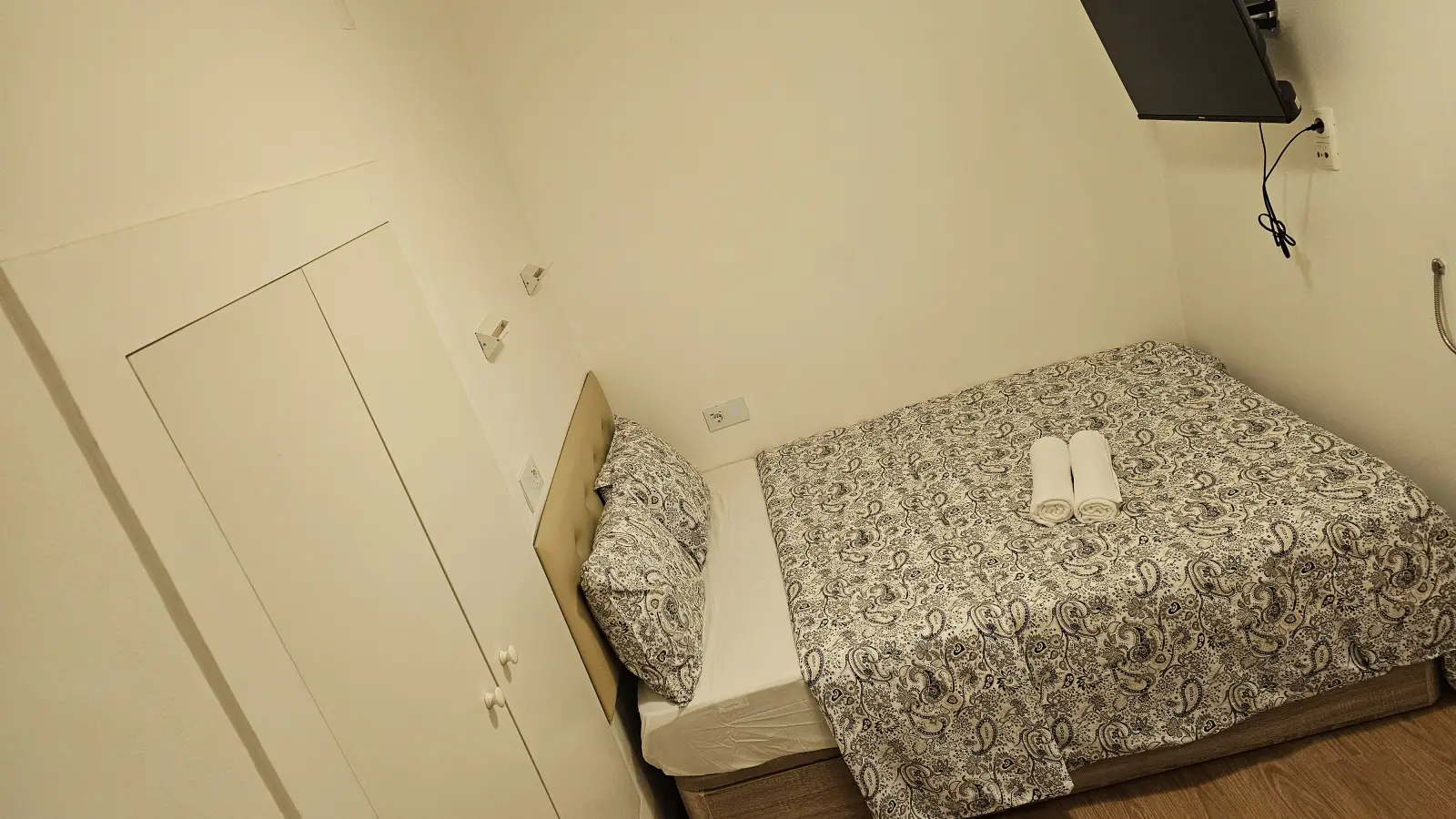 Quarto mobilado, cozinha com placa, forno, frigorifico, micro-ondas, maquina de lavar roupa e mesa Fica a sete minutos do centro de Lisboa e da estação do Rossio, a tres minutos do Hospital S. José e cinco minutos do metro Martim Moniz. Despesas incluídas, eletricidade consumo até vinte euros incluído no preço.