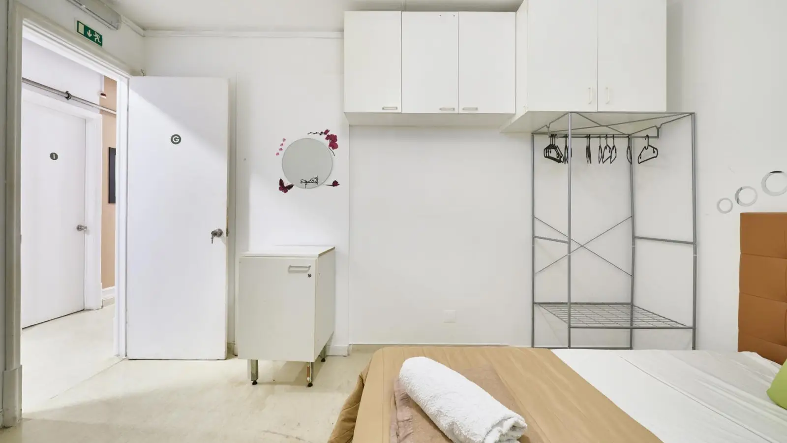 Este quarto compartilhado em um apartamento de 20 quartos em Lisboa está totalmente mobiliado e dispõe de eletrodomésticos privativos, como máquina de lavar roupa, secadora, lava-louças e forno. Possui cozinha interna completa com todos os utensílios essenciais. Embora não haja ar-condicionado, o apartamento é acessível por elevador, proporcionando maior comodidade. Esta propriedade foi verificada pessoalmente pela Spotahome.