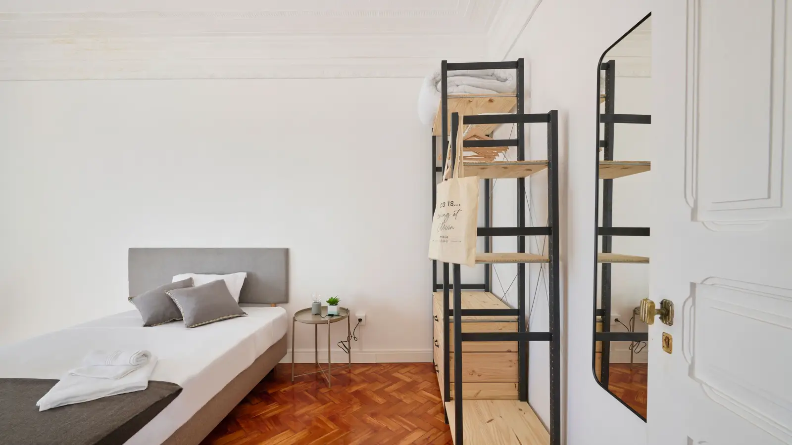 Este é um quarto em um apartamento compartilhado de 7 quartos localizado em Lisboa. O imóvel está totalmente mobiliado, incluindo uma cozinha bem equipada com lava-louças e forno, e também oferece acesso a uma varanda. O Wi-Fi está incluído, enquanto a eletricidade, o gás e a água são pagos diretamente ao proprietário. Este apartamento é ideal para profissionais e estudantes, pois casais não são permitidos. Pessoas de ambos os sexos são bem-vindas. Observe que o proprietário não reside no local.