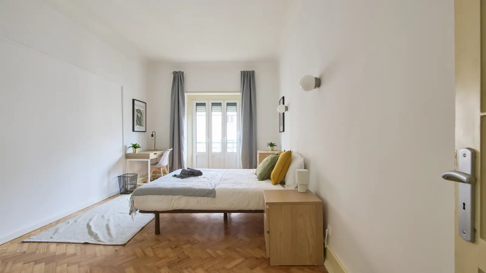 Quarto disponível para alugar em apartamento compartilhado de 5 quartos em Lisboa, ideal para profissionais e estudantes.