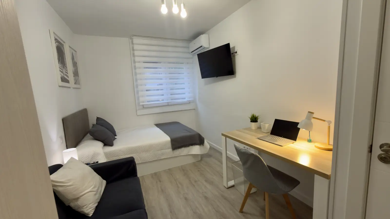 Este é um quarto confortável em um apartamento compartilhado de 4 quartos localizado em Getafe. O apartamento é mobiliado, possui cozinha equipada e varanda. Cada quarto tem ar-condicionado individual para controle personalizado da temperatura. Uma máquina de lavar roupa e uma lava-louças estão disponíveis para maior comodidade. Observe que animais de estimação e fumar não são permitidos.
