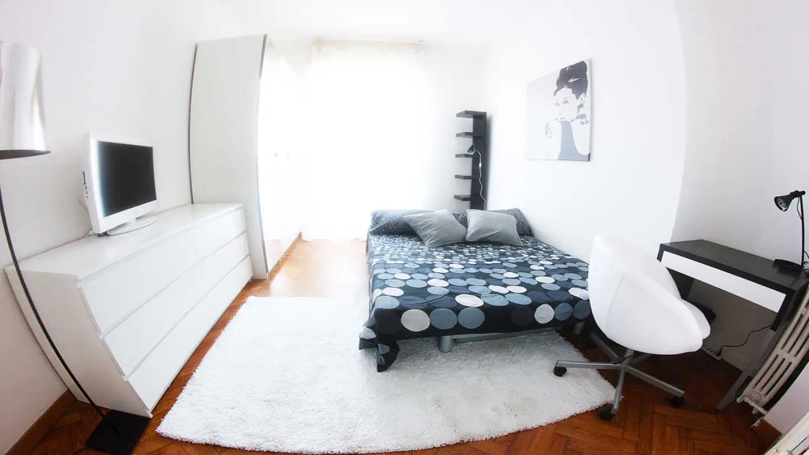 Quarto individual em apartamento compartilhado, composto por 4 quartos e 2 banheiros. De cerca de 14 m² com uma cama e meia e uma estação de trabalho. Com wifi, máquina de lavar. Classe energética: G, IPE 150,00 Kwh/m² ano.
