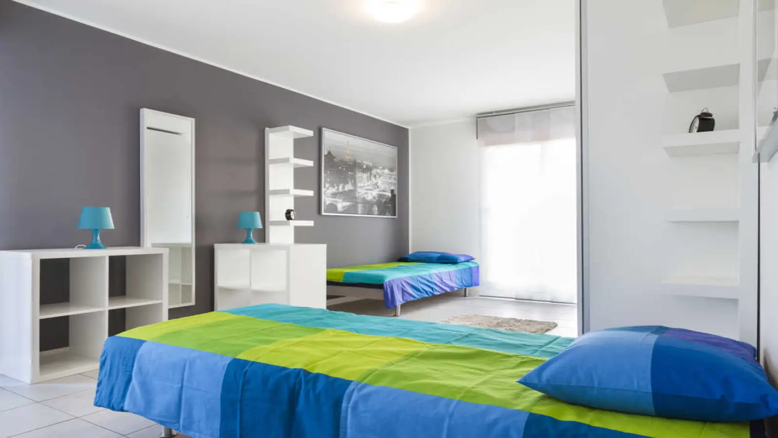 Este quarto está disponível em um apartamento compartilhado de 8 quartos no bairro de Bande Nere, em Milão. O apartamento é totalmente mobiliado e equipado com comodidades modernas para uma estadia confortável. Inclui ar-condicionado central, máquina de lavar roupa, lava-louças, forno e televisão. A propriedade foi inspecionada pela Spotahome, garantindo sua qualidade e confiabilidade. Todas as contas estão incluídas para uma estadia sem preocupações. Observe que animais de estimação e fumar não são permitidos na propriedade. É mais adequado para profissionais ou estudantes, e casais não são permitidos.