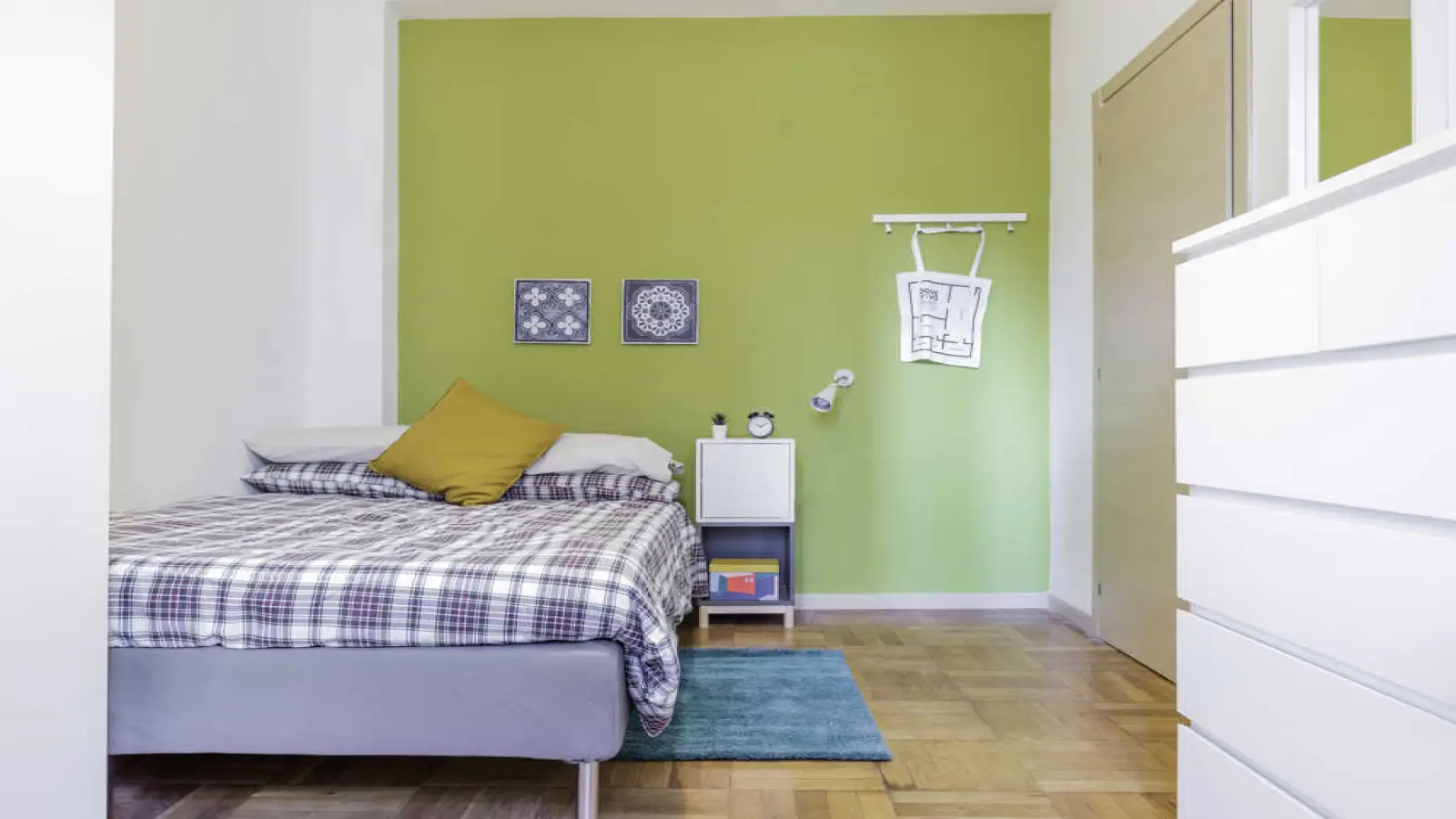 Quarto individual em apartamento compartilhado, composto por 4 quartos e 1 banheiro. De cerca de 15 m² com uma cama e meia e uma estação de trabalho. Com wifi, ar condicionado, serviços de concierge, lava-louças, máquina de lavar roupa. Classe energética: E, IPE 130,77 Kwh/m² ano.