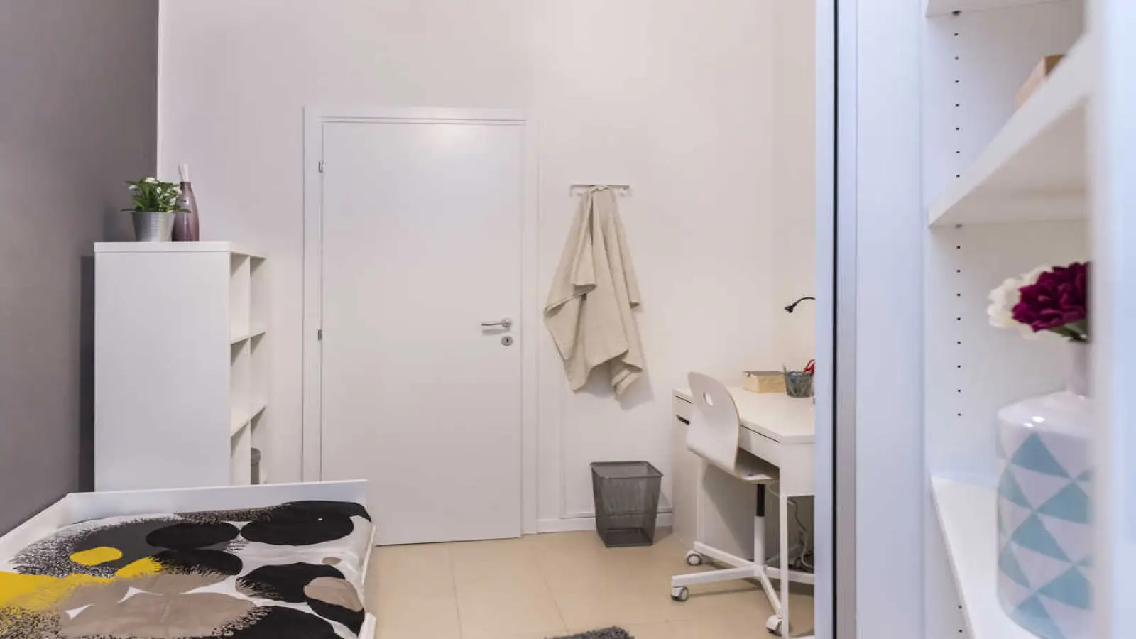Quarto individual em apartamento compartilhado, composto por 3 quartos e 1 banheiro. Com cerca de 9 m², com uma cama de solteiro e uma área de trabalho. Com Wi-Fi, serviços de concierge, lava-louças e máquina de lavar roupa. Classe energética: G, IPE 211,50 kWh/m² por ano.