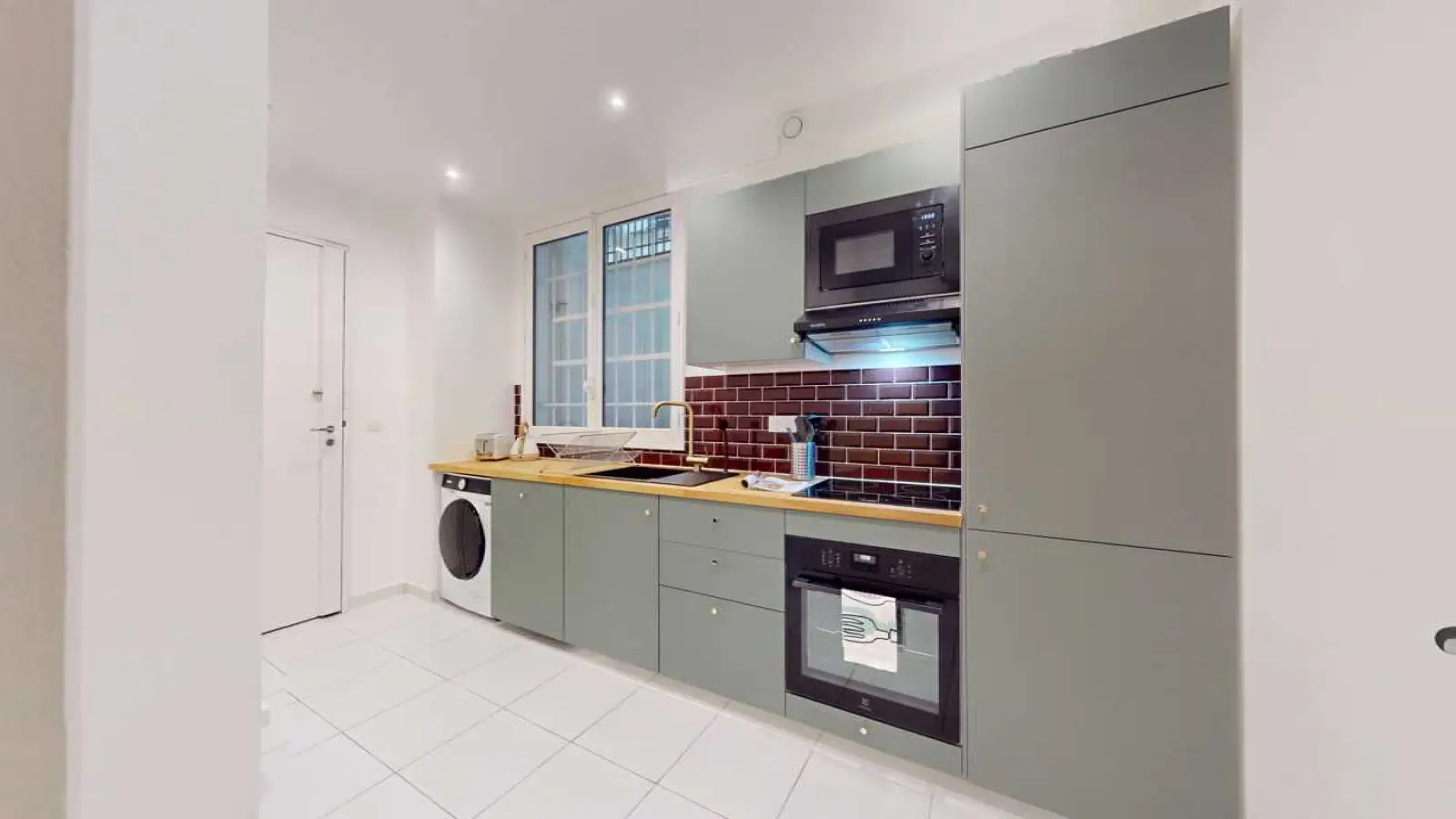 Este adorável quarto privado em um apartamento compartilhado totalmente equipado, mobiliado e com tudo incluído em Paris é uma mistura de conforto e design. Ele tem móveis domésticos, incluindo uma cama com travesseiros e edredom O que falta são suas coisas para se sentir em casa! O quarto pode ser trancado se você precisar de intimidade. O apartamento compartilhado pode ser encontrado no bairro Champs Elysées, no coração de Paris. Muitas lojas, transportes públicos e restaurantes são acessíveis nas proximidades. O apartamento fica no andar 0 com elevador. Está totalmente equipado e é composto por uma grande cozinha com geladeira, micro-ondas, panelas, louças, utensílios de cozinha, chaleira... A acomodação também contém uma tábua de passar roupa, uma máquina de lavar roupa, um cabideiro, um ferro de passar. Além disso, você encontrará itens de limpeza na acomodação: aspirador de pó sem saco, pá e escova, vassoura, esfregão e balde... Cada apartamento compartilhado mobiliado Joivy inclui todas as despesas: seguro de moradia, água, eletricidade, wi-fi ilimitado, taxas de condomínio, imposto de lixo doméstico.