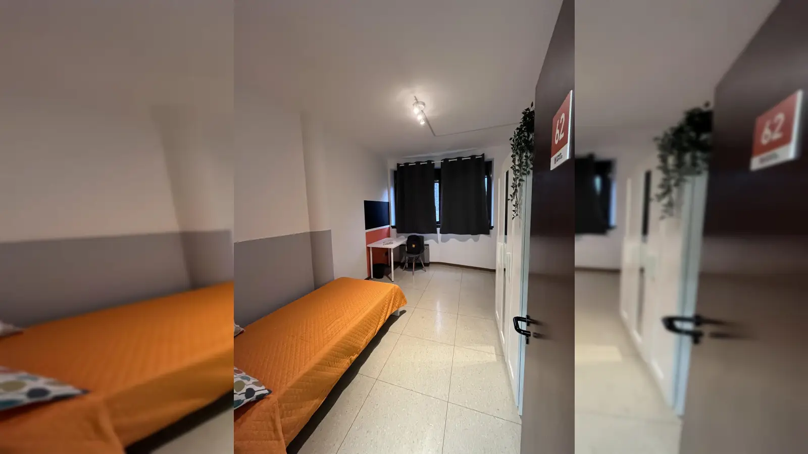Zona Solteri, posição estratégica e ambita, oferece uma belíssima estrofe Suite reestruturada apropriadamente para oferecer conforto e comodidade aos nossos estudantes. La stanza é dotata di letto ad una piazza e mezza, armadio 3 ante, scrivania con portaoggetti, comodino, tendaggi, specchio, scarpiera, libreria. Eu colori delle pareti favoriscono il buon umore e aiutano nello studio.