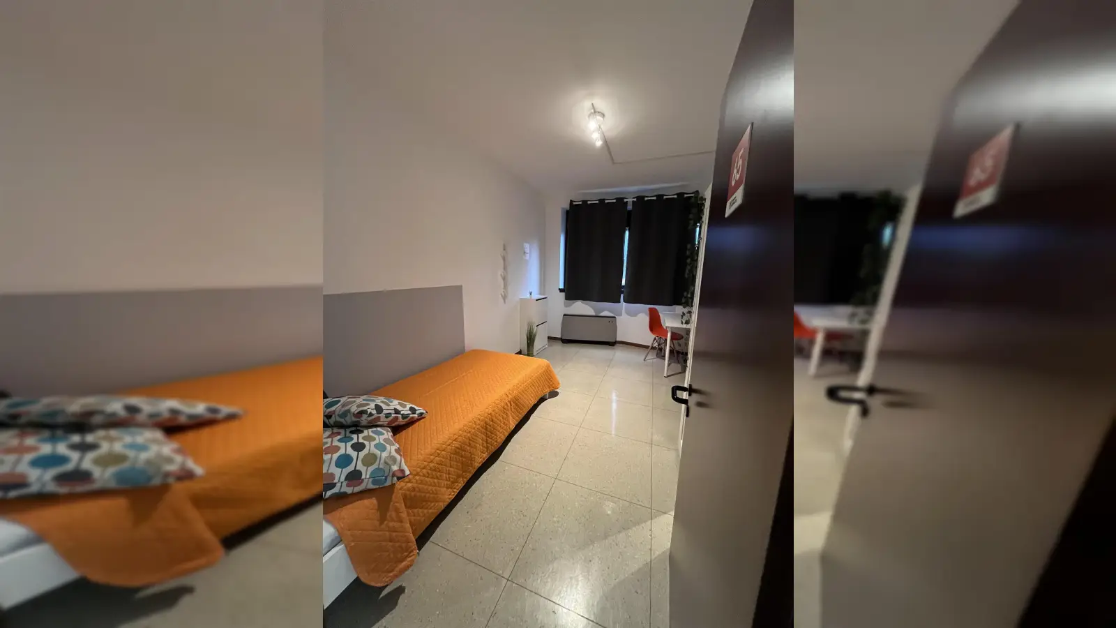 Zona Solteri, posição estratégica e ambita, oferece uma bela estrofe singola reestruturada apropriadamente para oferecer conforto e comodidade aos nossos estudantes. A estrofe é escrita em letto singolo armadio 3 ante, scrivania con portaoggetti, comodino, tendaggi, specchio, scarpiera, libreria. Eu colori delle pareti favoriscono il buon umore e aiutano nello studio.