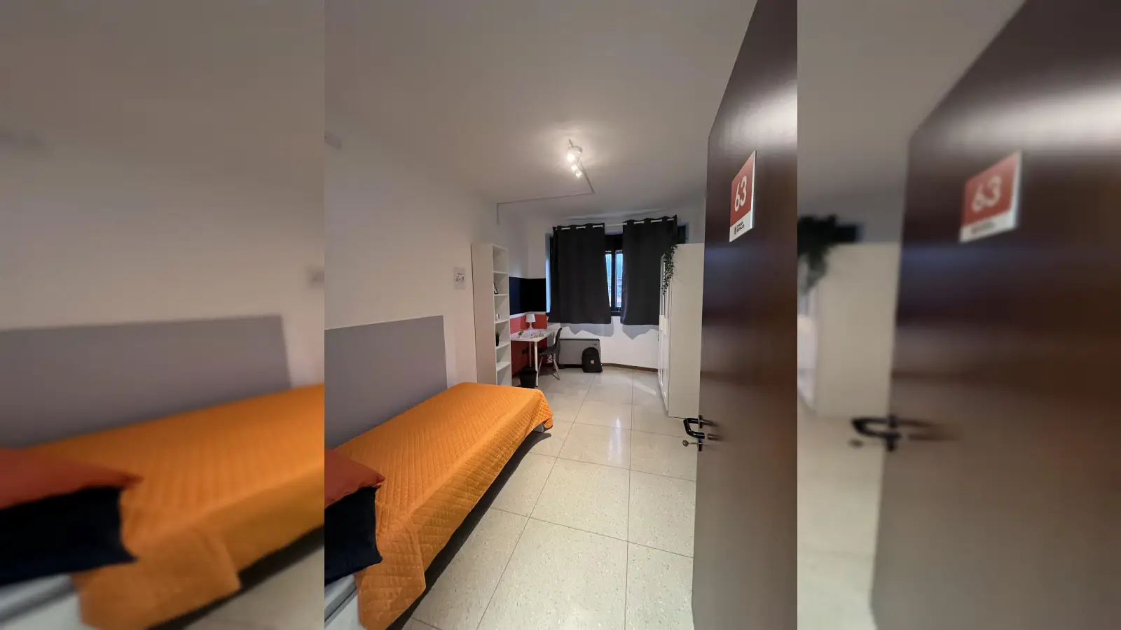 Zona Solteri, posição estratégica e ambita, oferece uma bela estrofe singola reestruturada apropriadamente para oferecer conforto e comodidade aos nossos estudantes. A estrofe é escrita em letto singolo armadio 3 ante, scrivania con portaoggetti, comodino, tendaggi, specchio, scarpiera, libreria. Eu colori delle pareti favoriscono il buon umore e aiutano nello studio.