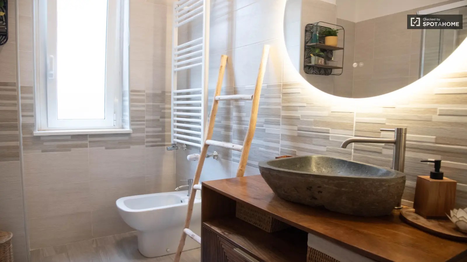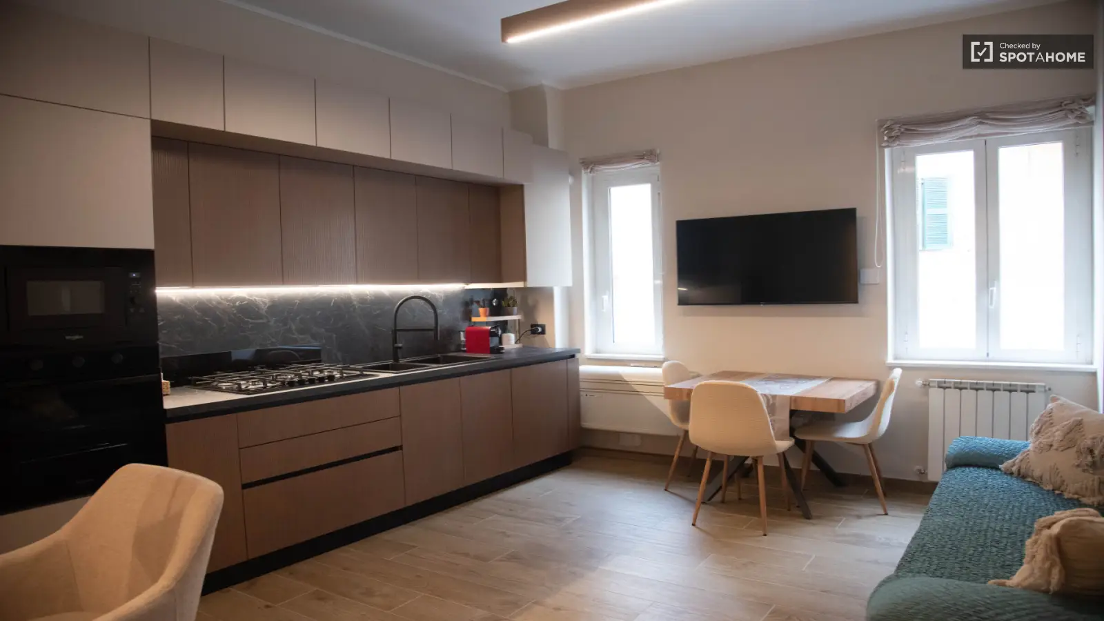 Discover this 1-bedroom apartment in Quadraro-Quartiere Tuscolano. The property offers fully furnished living spaces, an individual air conditioning unit, a private washing machine, and an equipped kitchen with a dishwasher, oven, and TV for your comfort. As the property is checked by Spotahome, you can move in with confidence in its quality and authenticity.