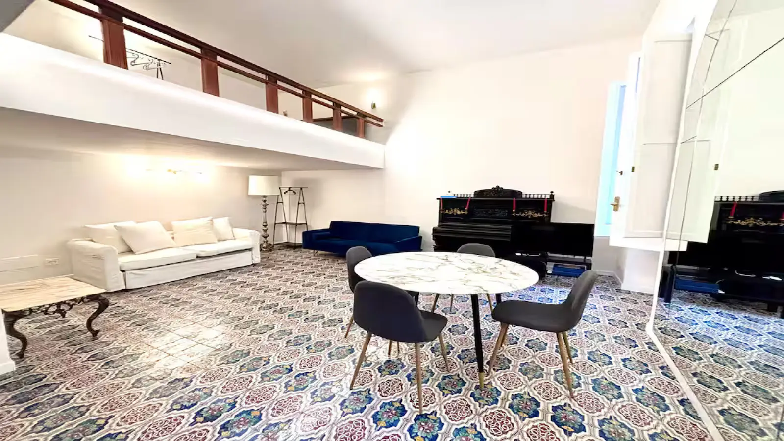 Experience a Roman holiday amidst elegance and history. Just steps from the enchanting Piazza Navona, you'll find yourself in the heart of Rome, surrounded by quaint cafes, traditional restaurants, and the city's main attractions, such as the Pantheon, Castel Sant'Angelo, and Piazza Venezia. This accommodation combines modern comfort with historic charm, ideal for relaxing and enjoying an authentic and unforgettable experience in the Eternal City. Elegant, tastefully renovated open space with a spacious living room featuring a double sofa bed, dining table, and antique piano. Fully equipped kitchen and washing machine. The ground floor bathroom is modern and elegant with a contemporary shower. A mezzanine bedroom with a double bed and a second bathroom with a bathtub. The apartment features Wi-Fi, a Smart TV, air conditioning, heating, and bed linens and towels.