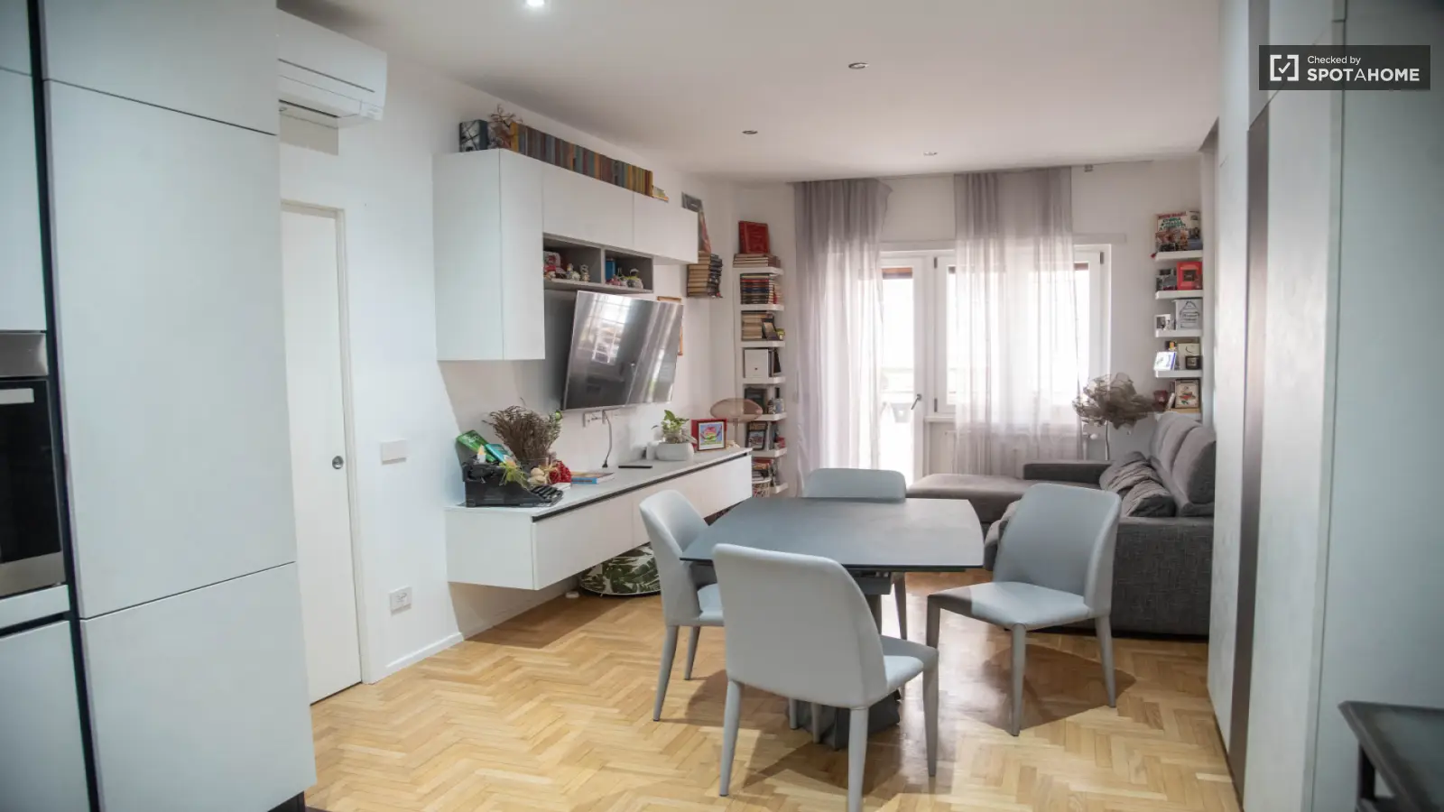 Welcome to this stunning 2-bedroom apartment located in Monte Sacro Alto, Rome. This fully furnished apartment comes with individual air-conditioning units, ensuring your comfort throughout the year. It features a fully equipped kitchen including a dishwasher and oven, a private washing machine, and a balcony for your relaxation. Additionally, the property offers elevator access for convenience and parking availability.