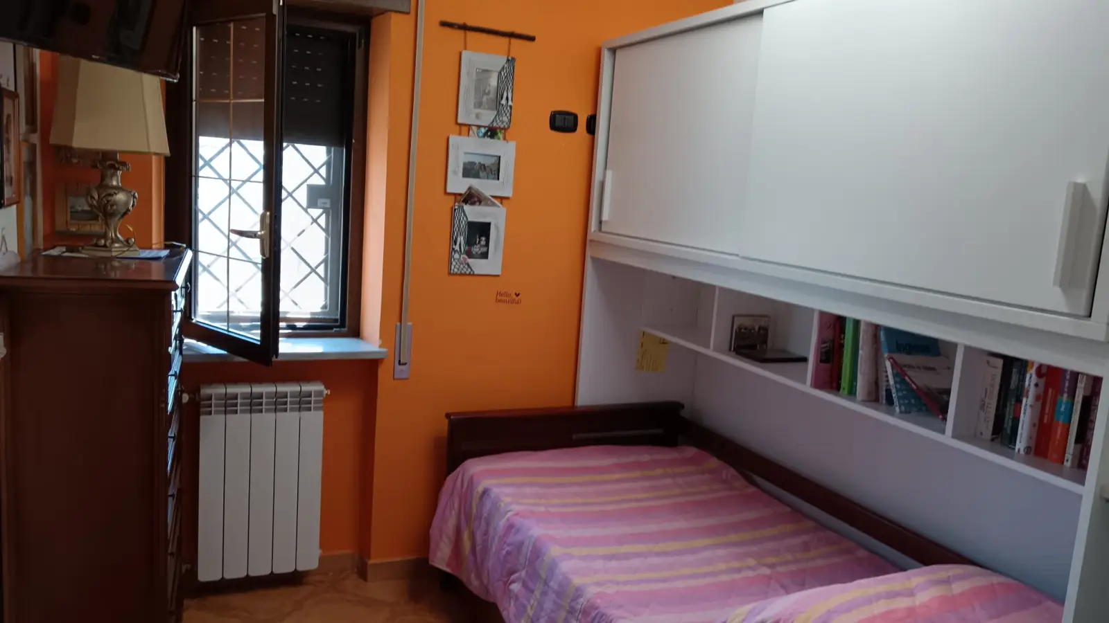 Looking for a comfortable and convenient place to stay in Rome? This room in a shared 3-bedroom apartment located in Giardinetti-Tor Vergata Zona Torrenova could be the perfect match for you. The room is fully furnished with a single bed, desk, standalone wardrobe, chest of drawers, shelving, and heating units, offering a great environment for work and relaxation.