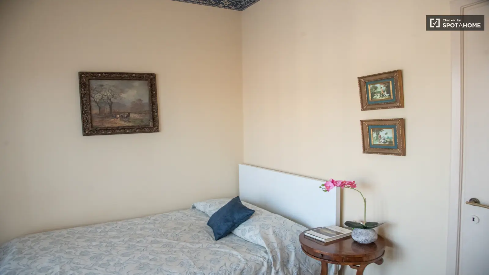Welcome to your new home in Rome! This is a room in a shared 3-bedroom apartment equipped with a cozy double bed, built-in wardrobe, and a functional desk, ensuring comfort in your everyday life. The room comes furnished for your convenience and has an independent key for your security. The interior features a private bathroom and a balcony, ideal for enjoying fresh air and relaxing outdoors.