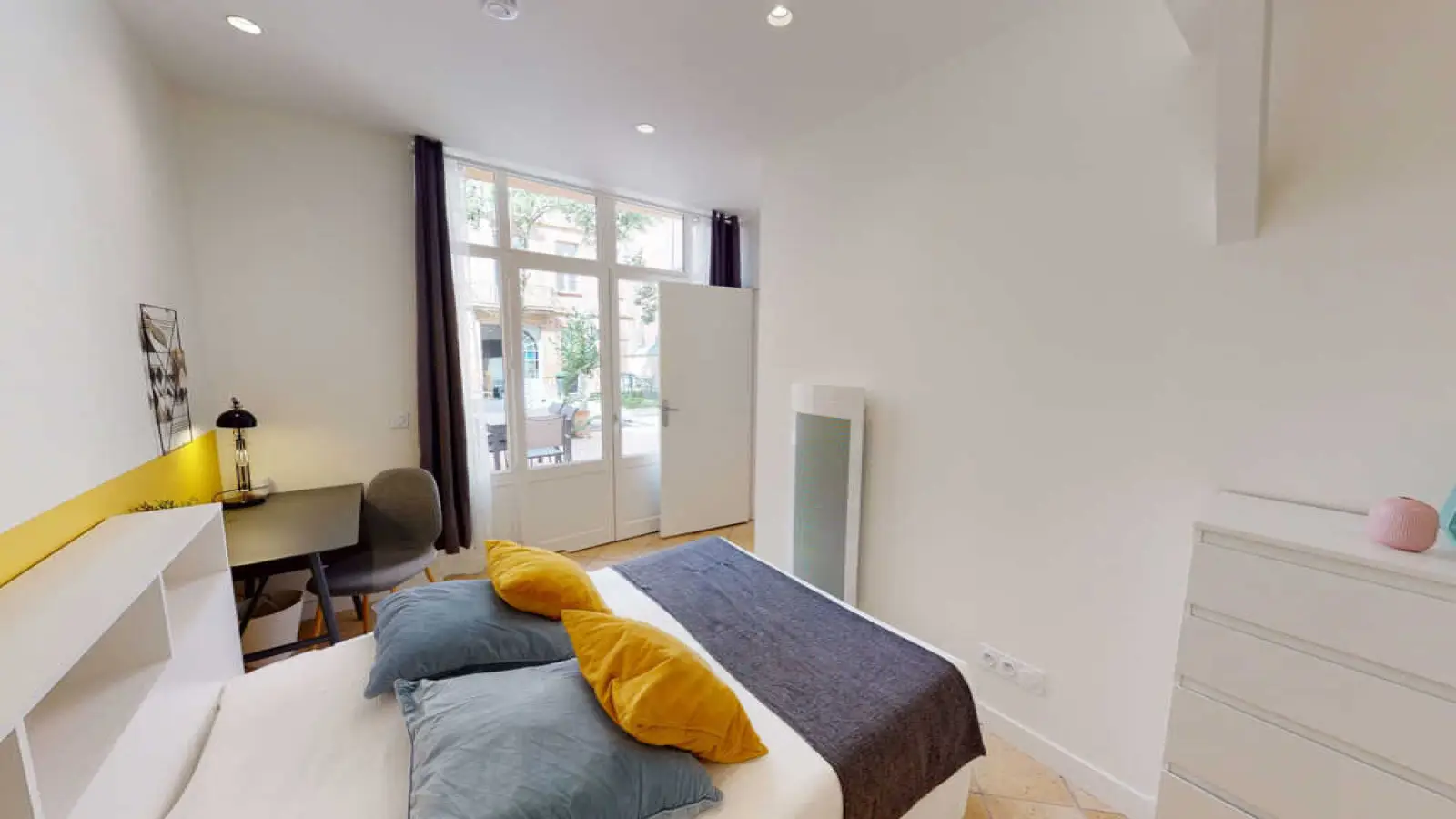 This lovely private bedroom in a fully equipped, furnished and all-inclusive flatshare in Toulouse is a mix of comfort and design. It has got household furnishings, including a bed with pillows and duvet What is missing is your things to feel at home! The room can be locked if you need intimacy. The flatshare can be found in the Jeanne d'Arc neighborhood, in the heart of Toulouse. Plenty of shops, public transports, restaurants are accessible close by. The apartment is on floor 0 without lift. It is entirely equipped and is composed of a large kitchen with refrigerator, microwave, pans, crockery, kitchen ustensils, kettle… The accommodation also contains an ironing board, a washing machine, a clothes rack, an iron. Additionally, you will find cleaning items in the accommodation: bagless hoover, dustpan and brush, broom, mop and bucket… Every Joivy furnished flatshare includes all expenses: housing insurance, water, electricity, unlimited wi-fi, condominium fees, household waste tax.