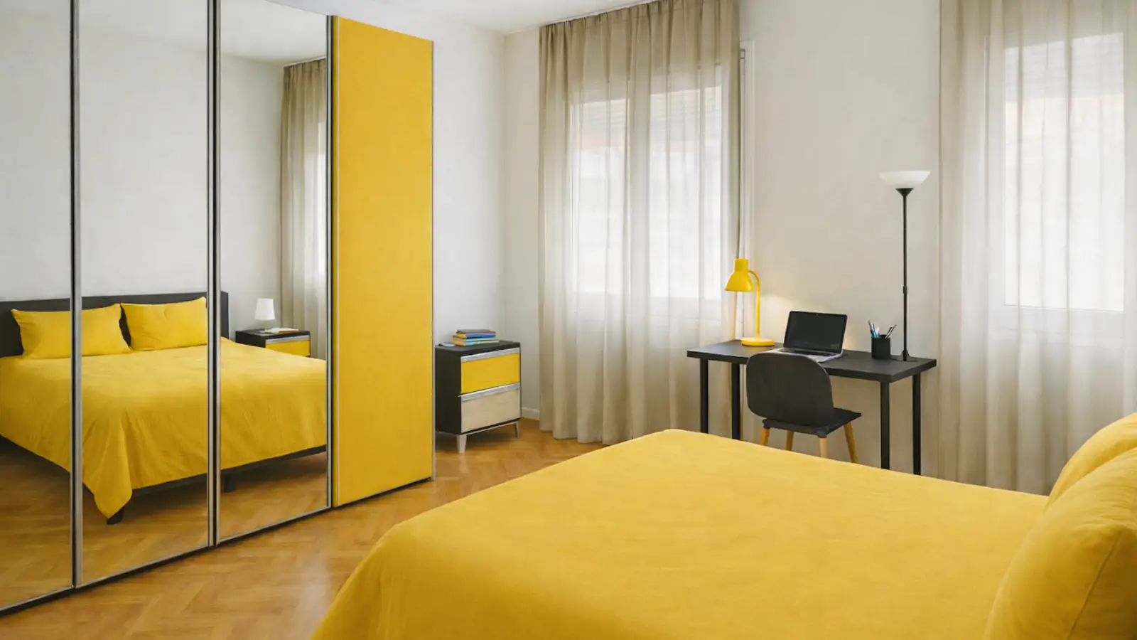 Single in a very central area close to all faculties! In the center, a cozy double bed invites you to relax after a long day. Next to it, an elegant nightstand houses everything you need within reach, from your favorite book to your evening cup of tea. Opposite the bed, a large four-door wardrobe offers plenty of space for your clothes and accessories, organizing your life efficiently and fashionably. A spacious desk completes the room, accompanied by a comfortable chair, ready to accommodate your moments of study or creative work. This room is not just a place to sleep, but a space that enhances your creativity and tranquility, a personal corner in the heart of the city just waiting to be yours.