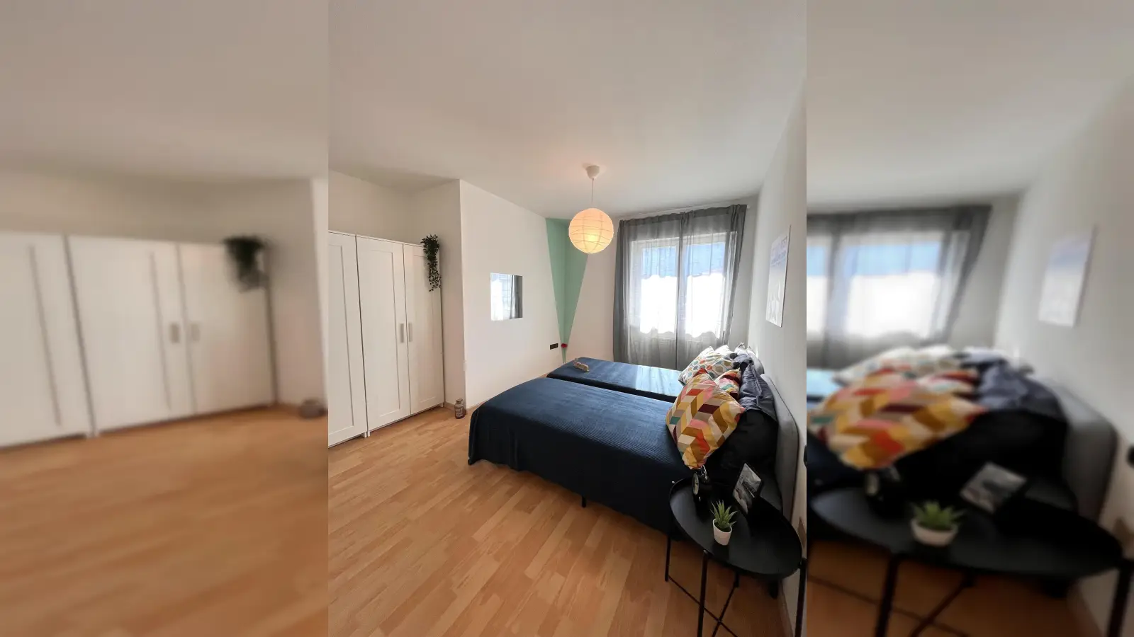 Dettagli della stanza matrimoniale: Letto matrimoniale: comodo e spazioso, ideale per un riposo rigenerante. Due comodini: pratici e posizionati ai lati del letto, per tenere tutto a portata di mano. Armadio: ampio e capiente, perfetto per organizzare al meglio il guardaroba. L'appartamento è perfetto per coppie o per chi cerca un ambiente confortevole e ben organizzato.