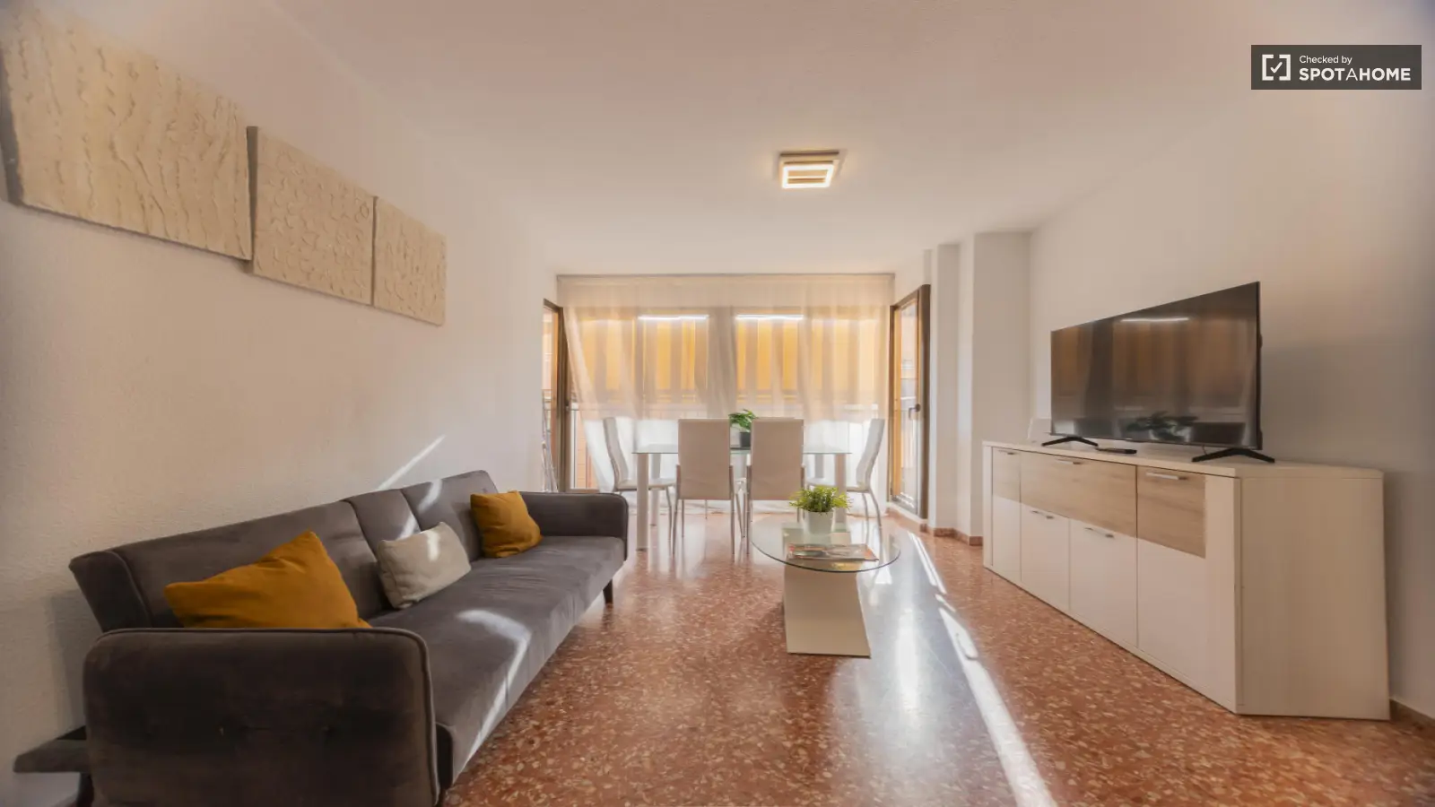 Discover this fully furnished 2-bedroom apartment located in Benimámet, Valencia. This property is equipped with air conditioning and heating via individual units, ensuring your comfort throughout the seasons. The kitchen comes fully equipped, including private washing machine and clothes dryer for added convenience. Enjoy access to an elevator and parking facilities while residing in a non-smoking and pet-free environment. Additionally, all expenses for electricity, water, gas, and WiFi are included in the rental price. Rest assured, this property has been personally verified by Spotahome for quality and accuracy.