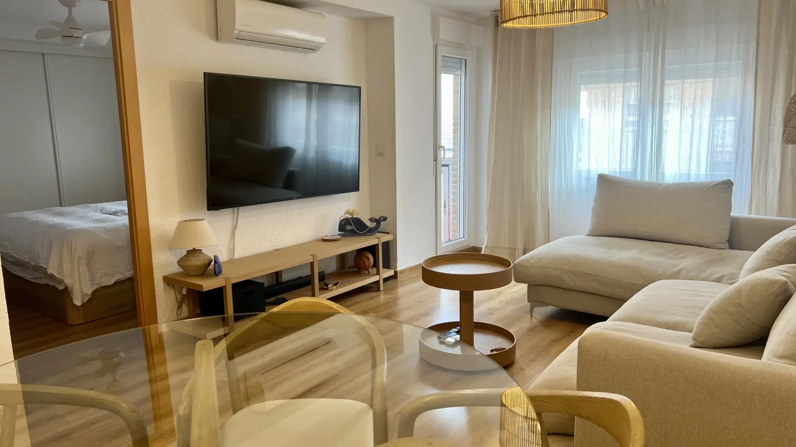 This 2-bedroom apartment in Torrefiel, Valencia, is an ideal choice for tenants looking for a fully furnished property. It features an equipped kitchen, a balcony or terrace for outdoor relaxation, individual air conditioning units, and includes necessary appliances such as a common washing machine and a dishwasher. This property is accessible to professionals and students, and couples are allowed. Note that utility costs must be managed separately by the tenant.