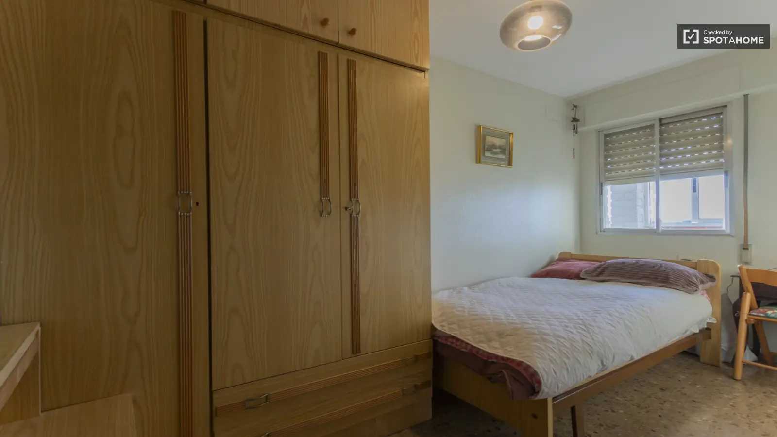 Welcome to a stylish room available for rent in a shared apartment situated in the appealing Malilla area of Valencia. The room is furnished for your convenience and part of a flat featuring an equipped kitchen, a private washing machine, and modern amenities including a dishwasher and oven. The apartment allows you to enjoy fresh air through its exterior layout, equipped with individual units for air conditioning, perfect for creating a comfortable living environment.
