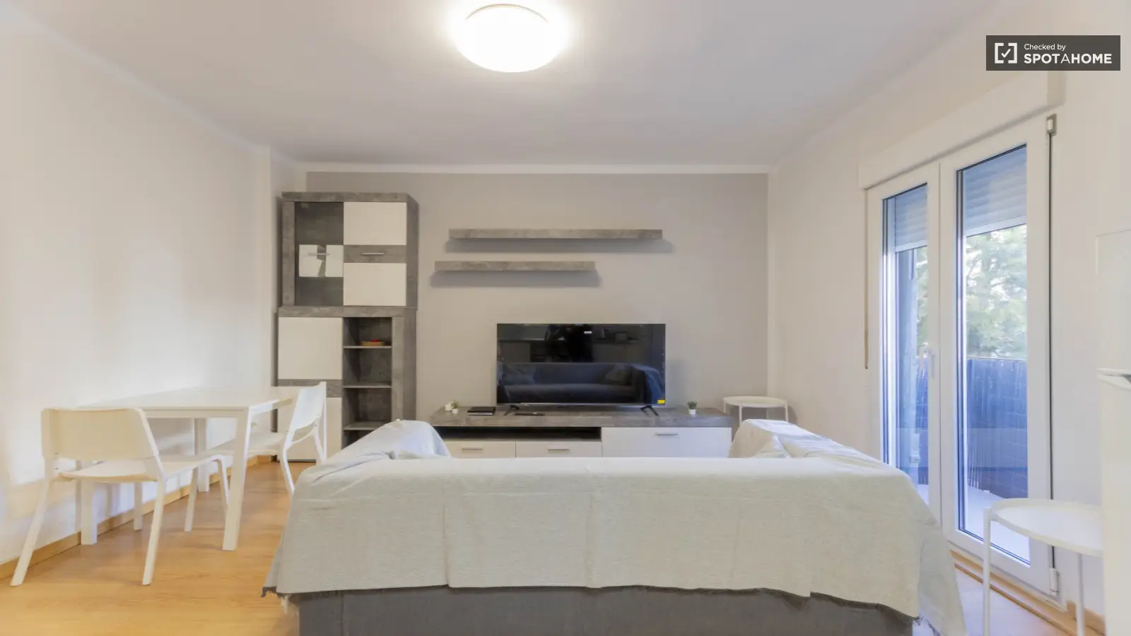 The apartment is located in the lively neighborhood of Tres Forques, Valencia, offering excellent access to local amenities and points of interest. Nearby, you'll find Avenida del Cid metro station providing transport links throughout the city, as well as vibrant dining options such as Pizzería Malik and City Kebab Pizzería. For daily conveniences, Comestibles y Bebidas Amparo market is also situated close by. Spotahome has personally checked this property, ensuring that it meets your expectations.