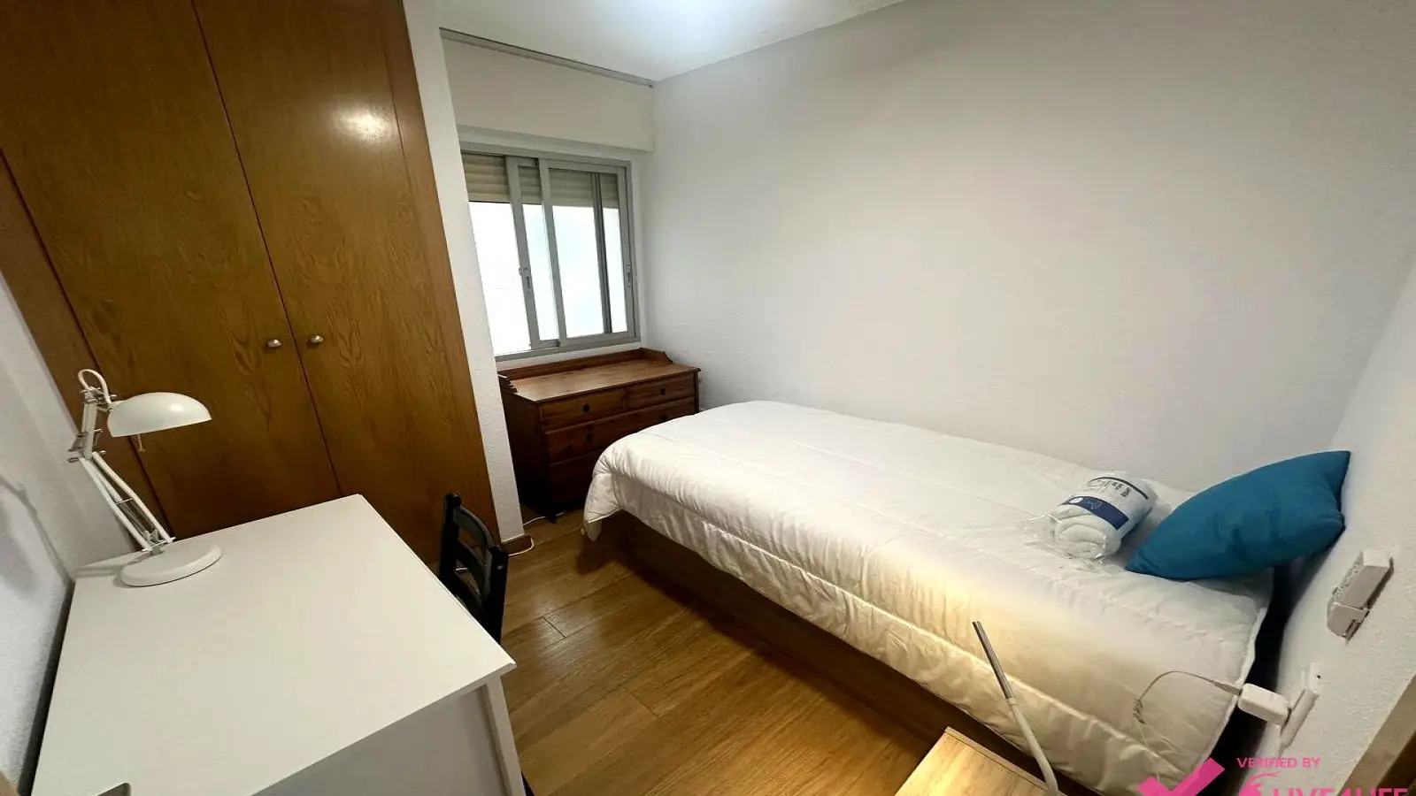 Discover this comfortable room in a shared 4-bedroom apartment located in L'Amistat, Valencia. The apartment comes furnished and offers individual air conditioning units, an equipped kitchen with a dishwasher and oven, a balcony, and a washing machine. Electricity is to be paid as a fixed rate to the landlord, while water, gas, and WiFi are included in the rent.