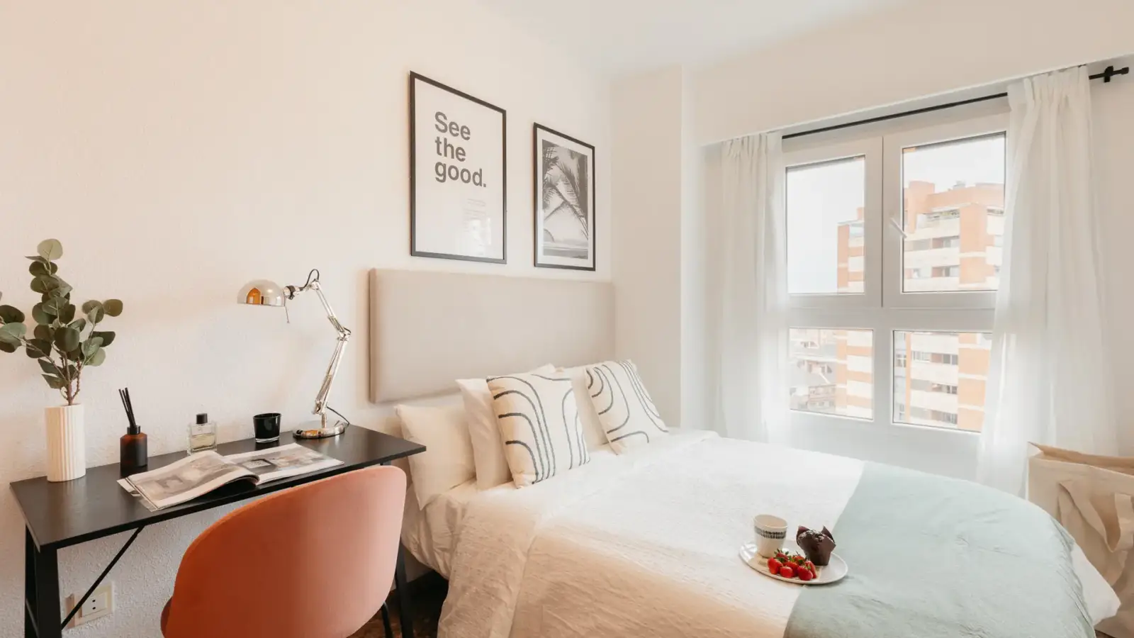 Discover a room within a shared 4-bedroom apartment located in Na Rovella, Valencia. This inviting space is furnished and equipped with modern amenities, including individual air conditioning units, a fully equipped kitchen, and appliances such as a washing machine, dishwasher, and oven. Although internet service is available, please note that water, electricity, and gas are included with a limit.