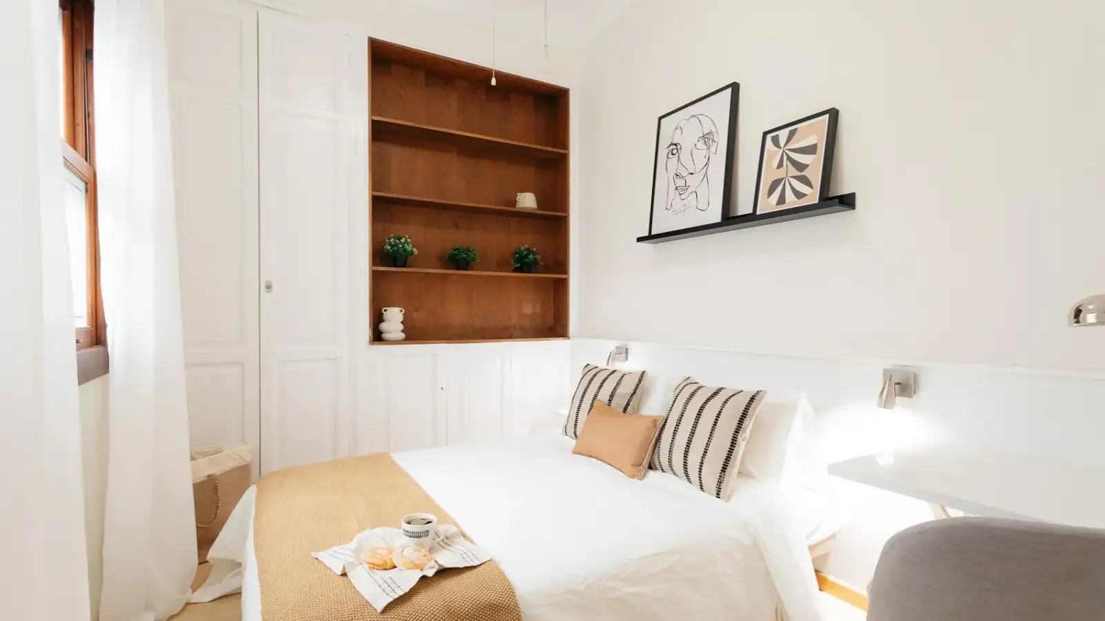 This is a room in a shared 8-bedroom apartment located in the La Gran Vía neighborhood of Valencia. The property comes fully furnished, including individual air conditioning units, a private washing machine, a dishwasher, an oven, and a TV. Being checked by a Spotahome Homechecker ensures your confidence in the verified listing details.